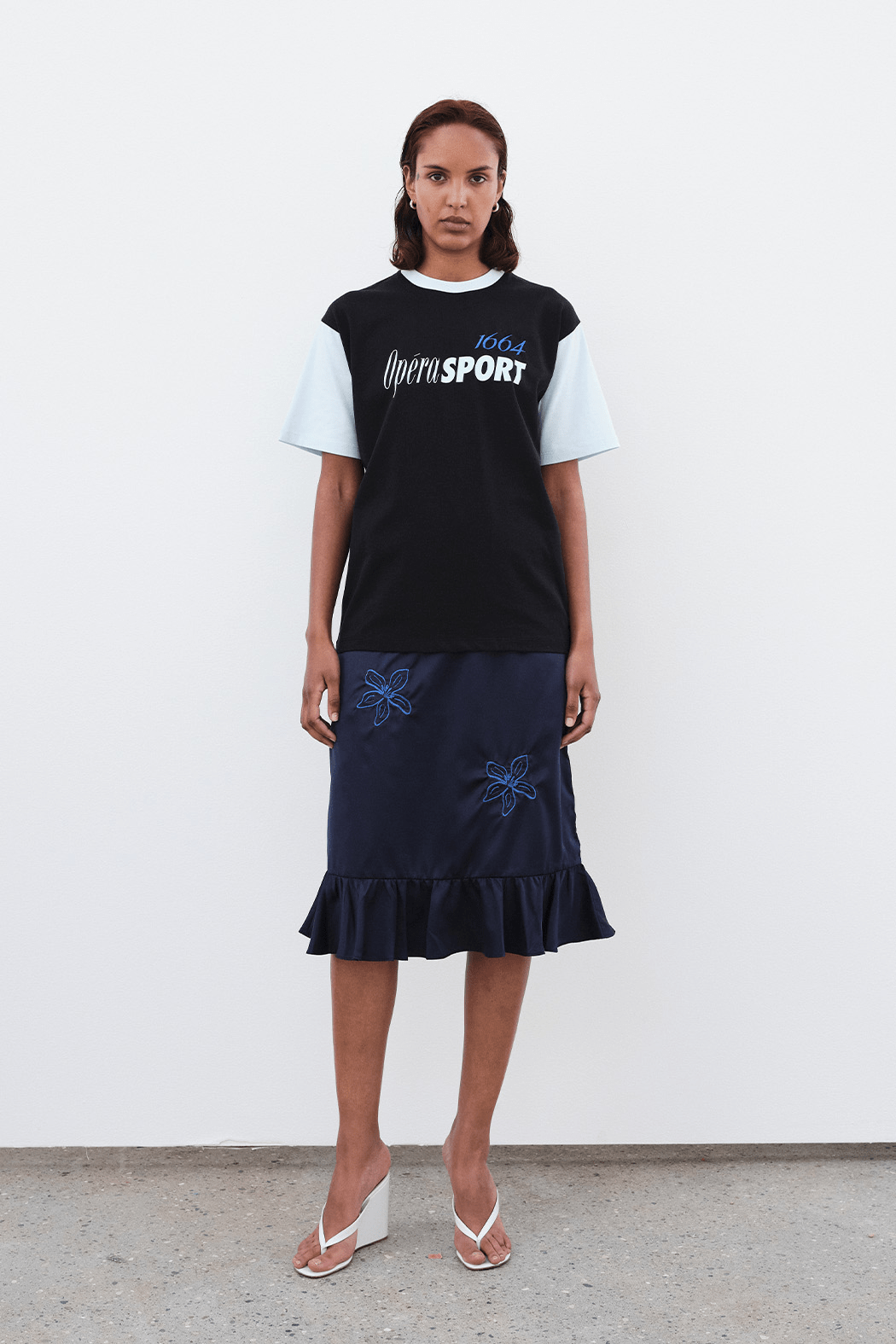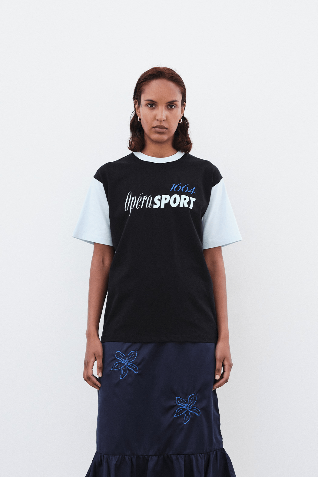 Crafted from 100% recycled cotton in ice water and black, the 1664 Unisex Logo T-shirt features a relaxed unisex fit with a round neckline, short sleeves, and a straight hem. Finished with a bold embroidered logo at the front to mark its place in the OpéraSPORT x 1664 capsule.