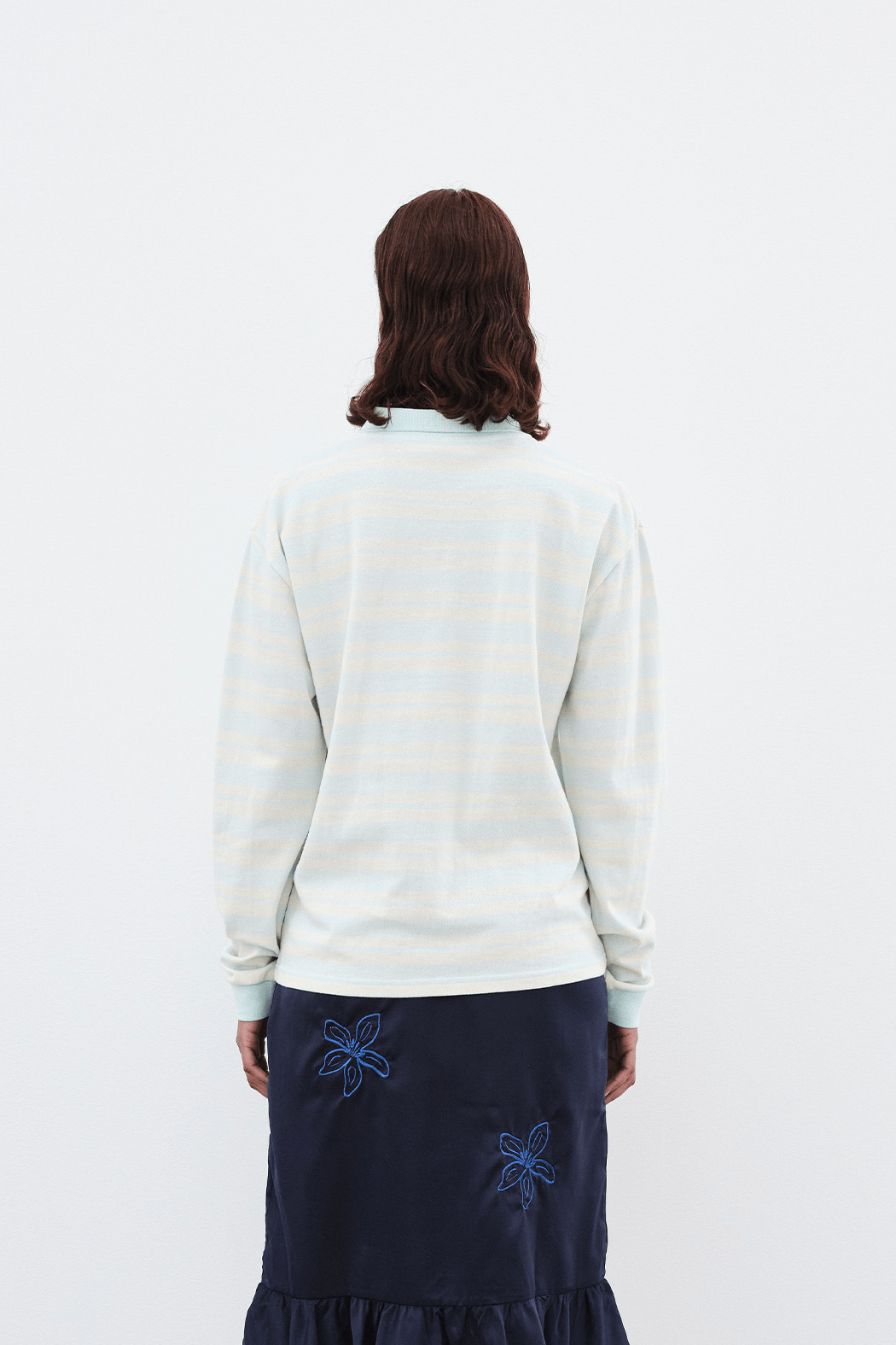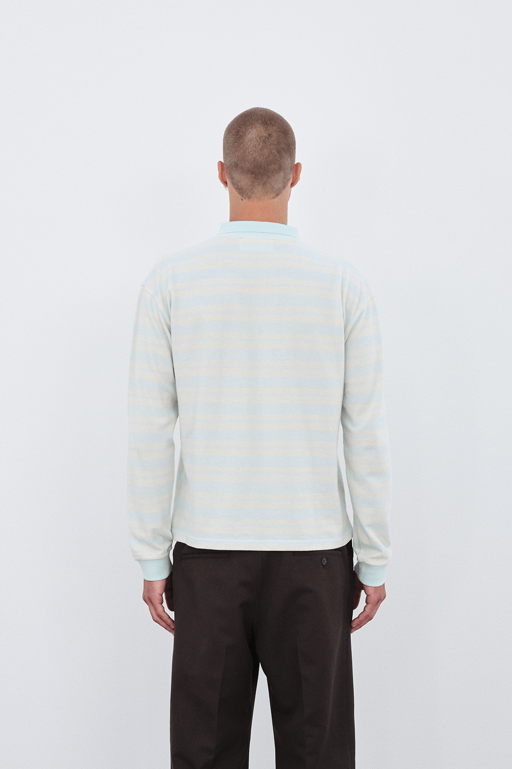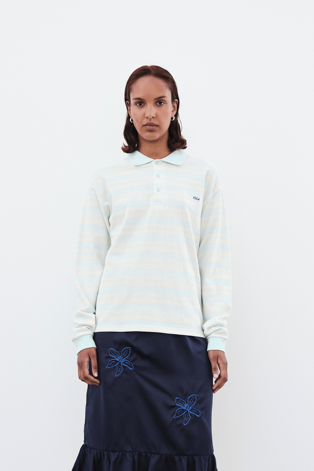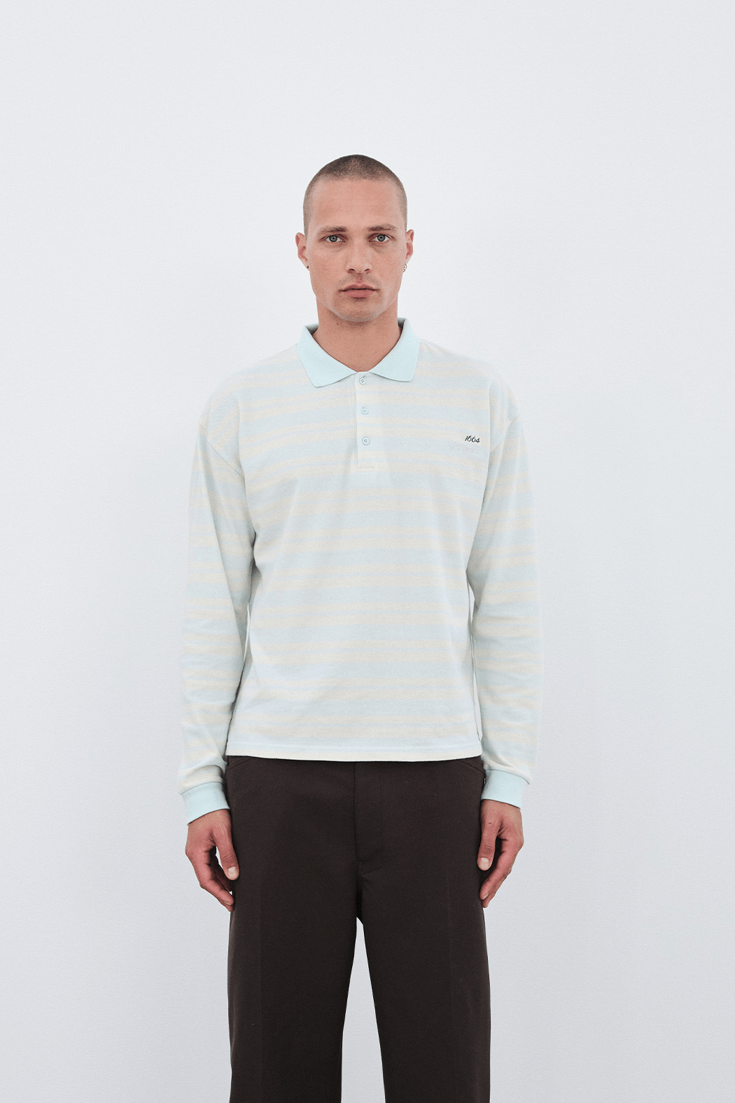 The 1664 Unisex Polo is part of the OpéraSPORT x 1664 capsule. Made from breathable 100% organic piqué cotton in blue and cream stripes, it features a soft collar, half button placket, and contrast cuffs. Capsule-specific embroidery at the chest completes the design.