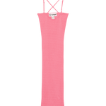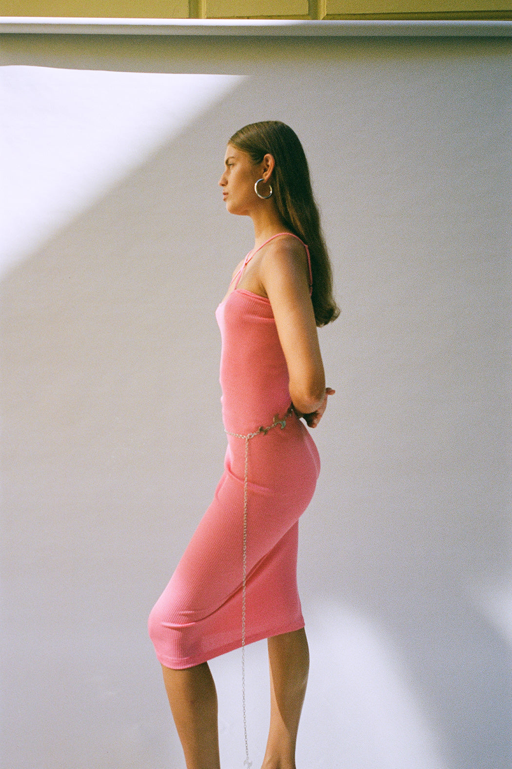 The Jennifer dress seamlessly blends versatility with its simple construction in 100% recycled seamless silk elevated by the crossover straps at the front.  The seamless silk closely hugs your figure and fits all shapes and sizes. Please note that this garment is made from 100% recycled silk, which is why small knots can appear.