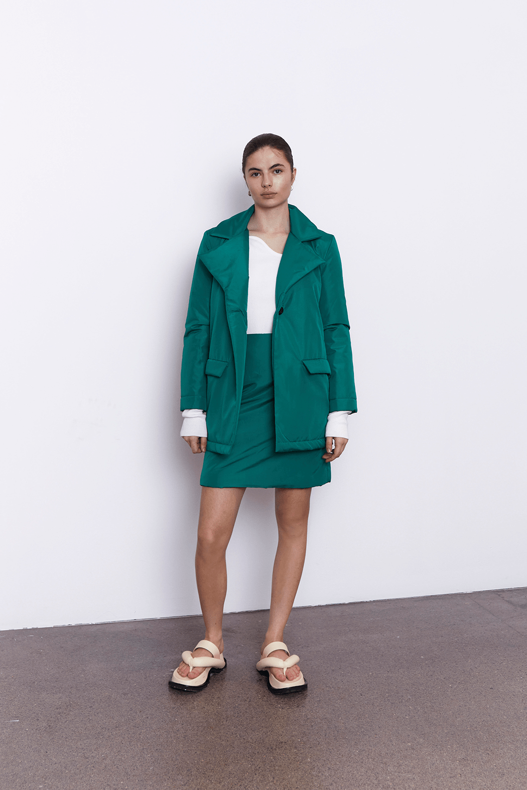 • Mid-weight, padded non-stretchy fabric