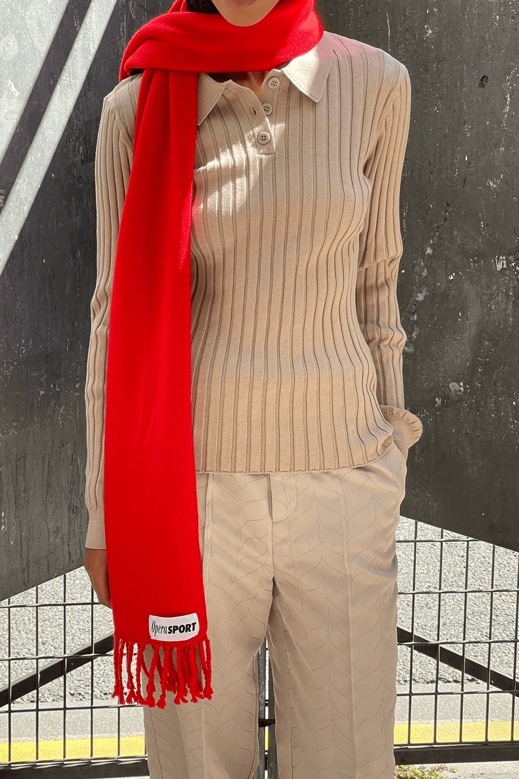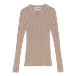 The elegant Palmira polo is crafted from neutral rib-knitted silk and cotton fabric. It has a slightly fitted design with long sleeves, a polo-inspired collar, and a half button-fastening placket. Ideal for the transitional months.