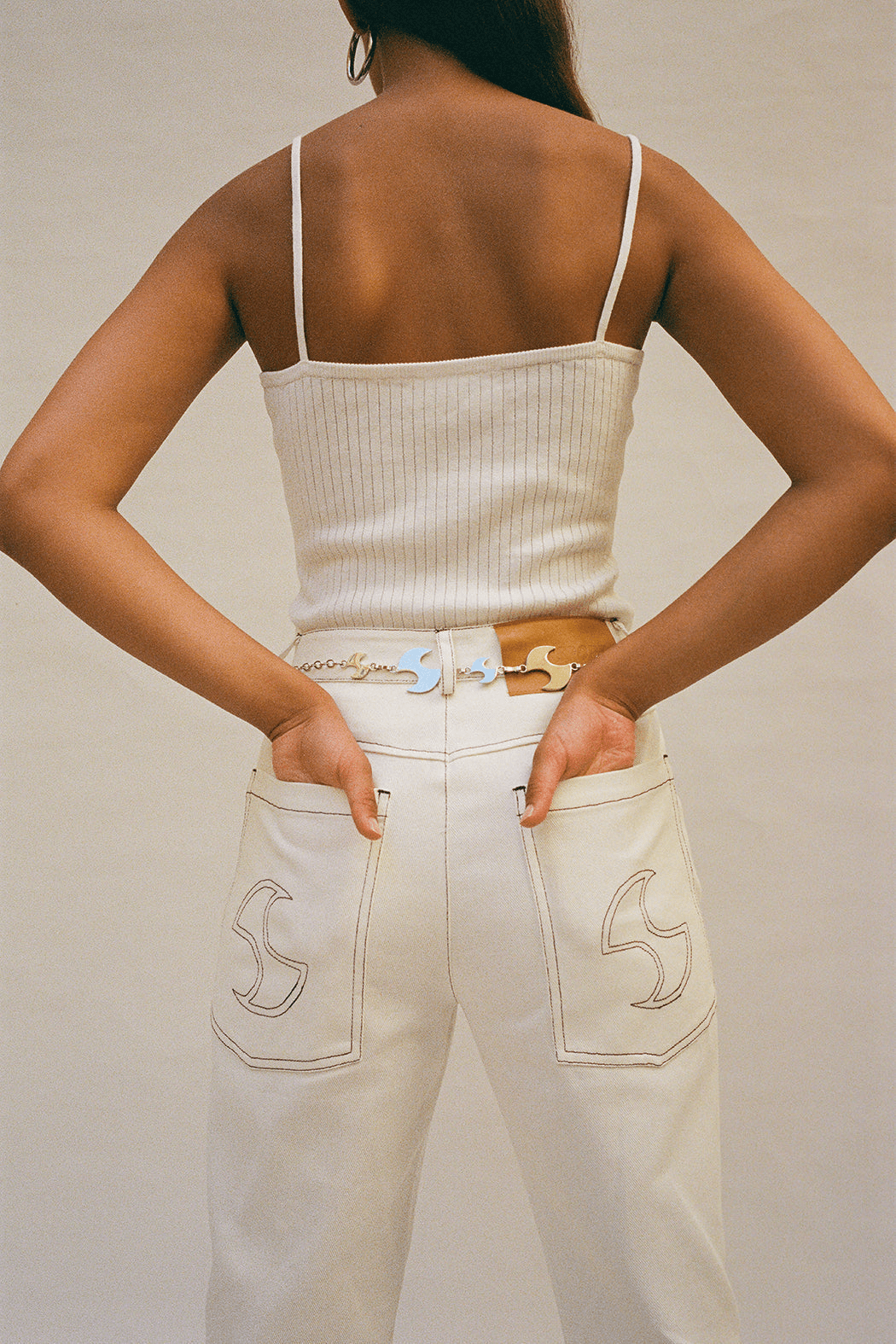 The Finley jeans are crafted of 100% organic cotton. They have a straight and casual fit with a zipper and button closure at the front, belt loops, and contrast stitching details. The jeans feature side and back pockets embroidered with OpéraSPORT's signature logo.