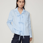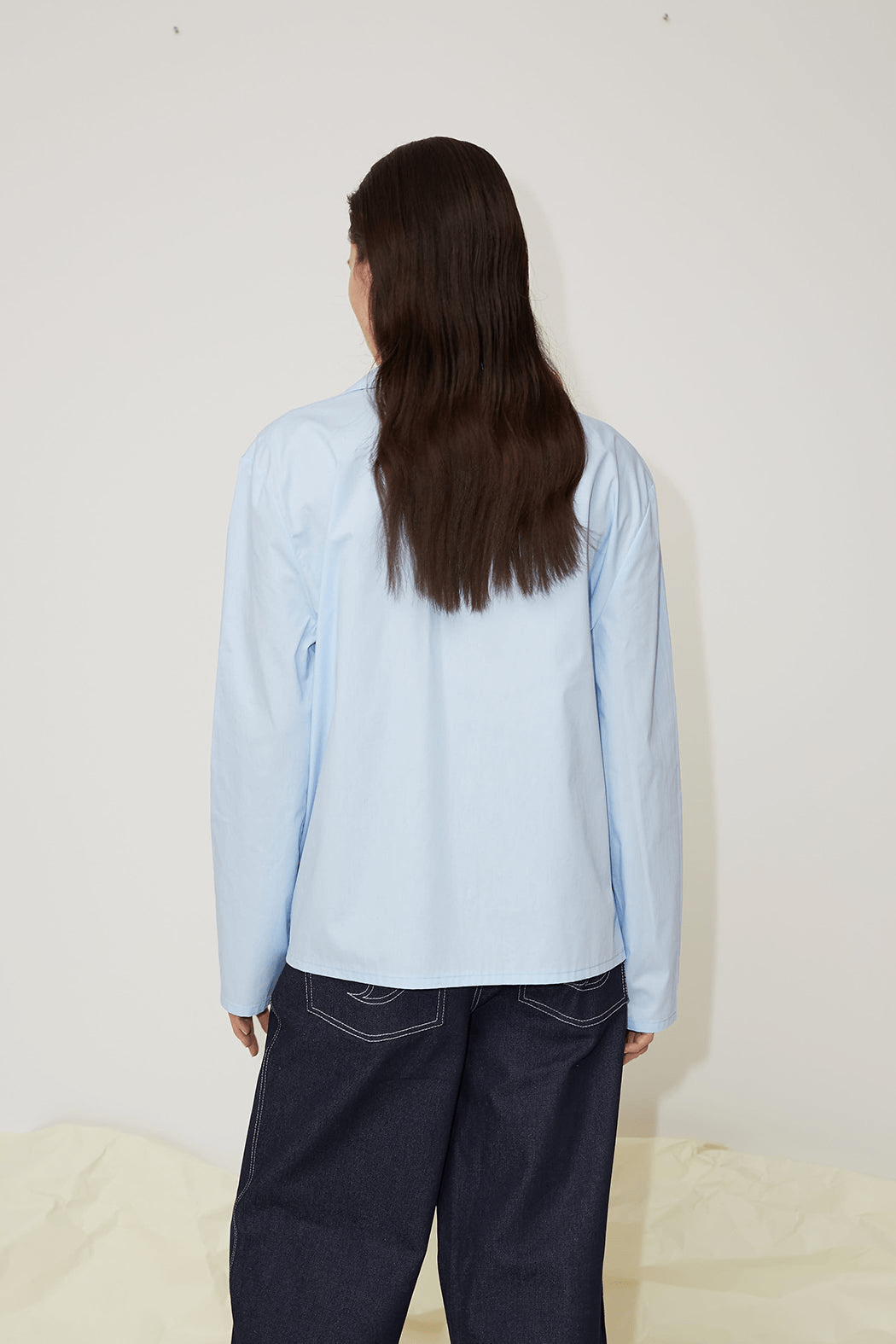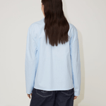 The Tavon shirt is crafted from crisp light blue poplin in 100% organic cotton. It has an oversize fit with long sleeves, a wide collar, and one front pocket embroidered with OpéraSPORT's signature logo. The shirt has ties that can either be left undone or knotted into a bow. Look no longer for your perfect wardrobe staple but with a twist.