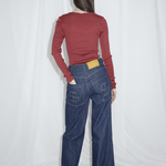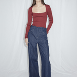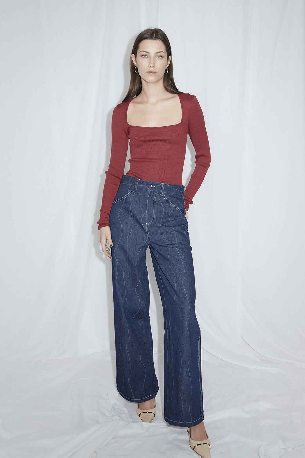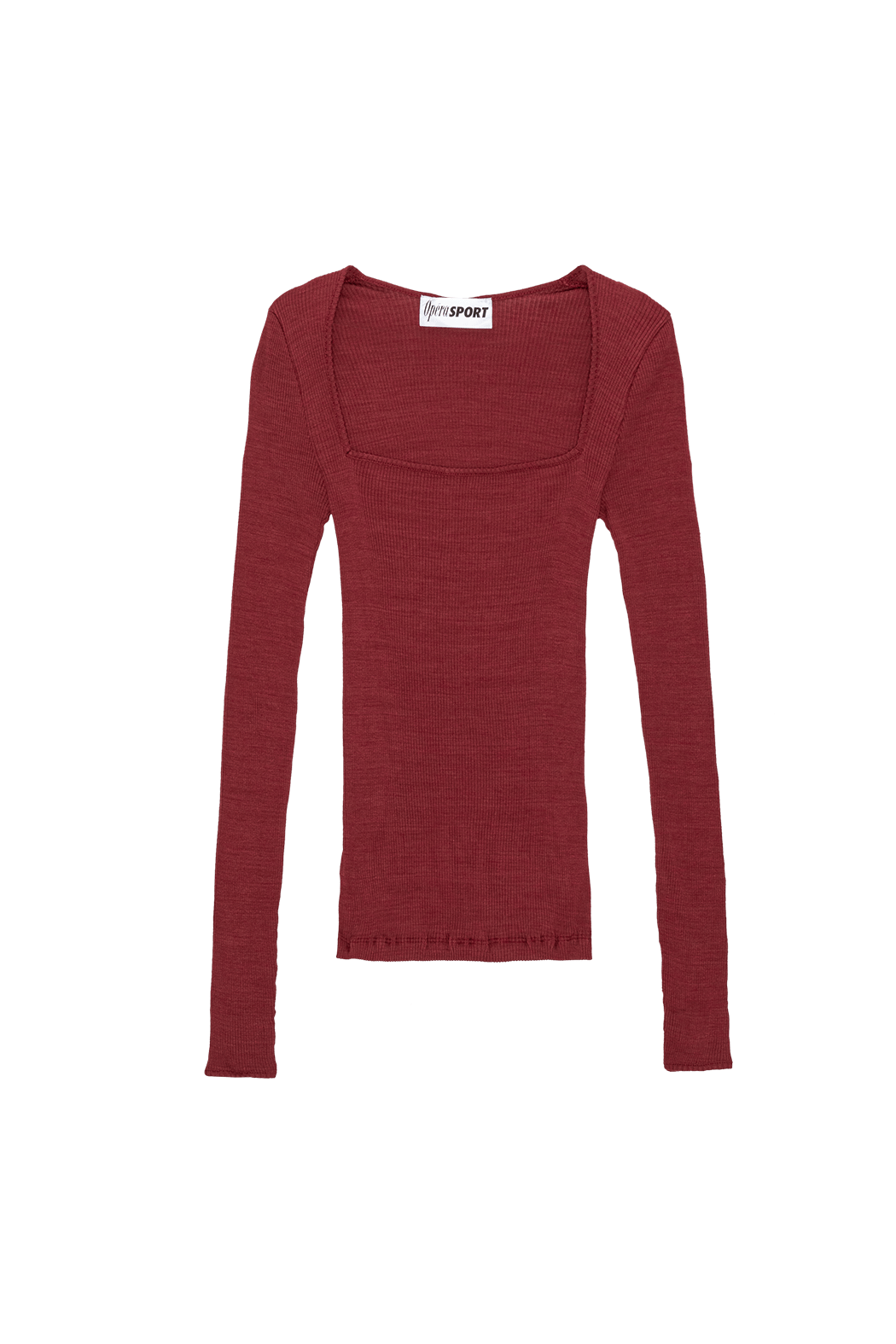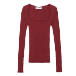 The elegant Rose Rib Top is made from stretchable seamless fabric in 100% recycled silk. The top has a slightly fitted silhouette with long sleeves and a square neckline. Small knots can appear due to the fabric being made of recycled silk.