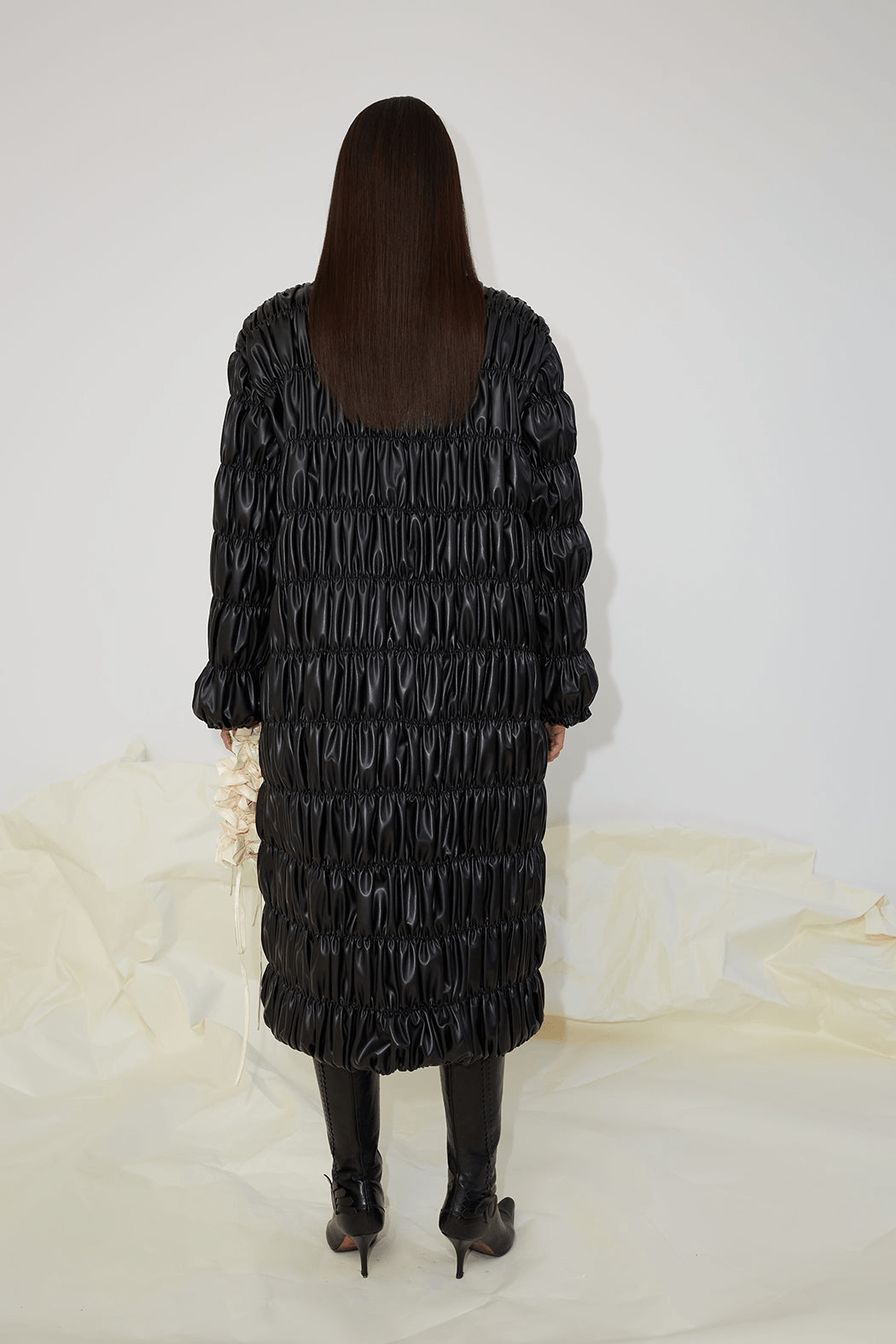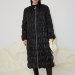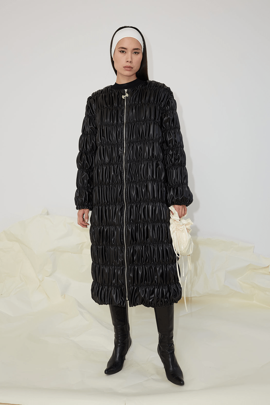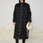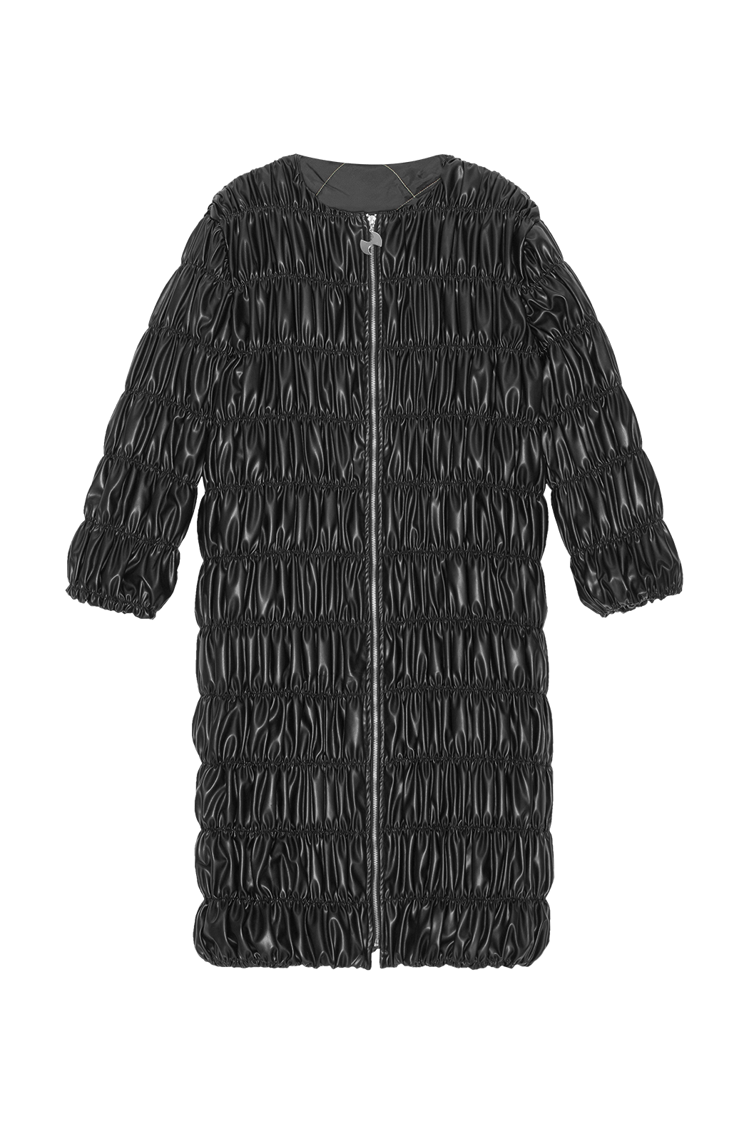The Ada jacket is crafted from 100% recycled PU that's gathered in ruches to create a soft and romantic texture. Featuring voluminous ruched ballon sleeves and a high shine finish, it features a crew neck and front zip fastening with a polished silver OpéraSPORT zipper. Wear it over OpéraSPORT separates for a contemporary feel.