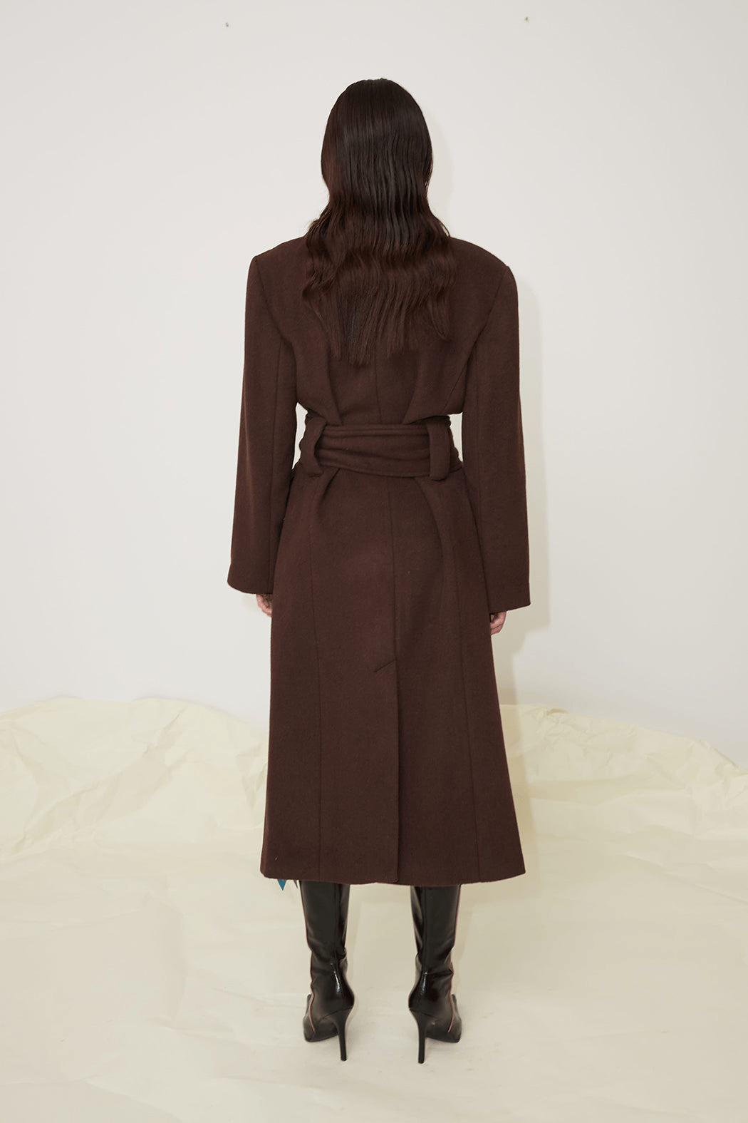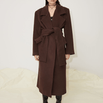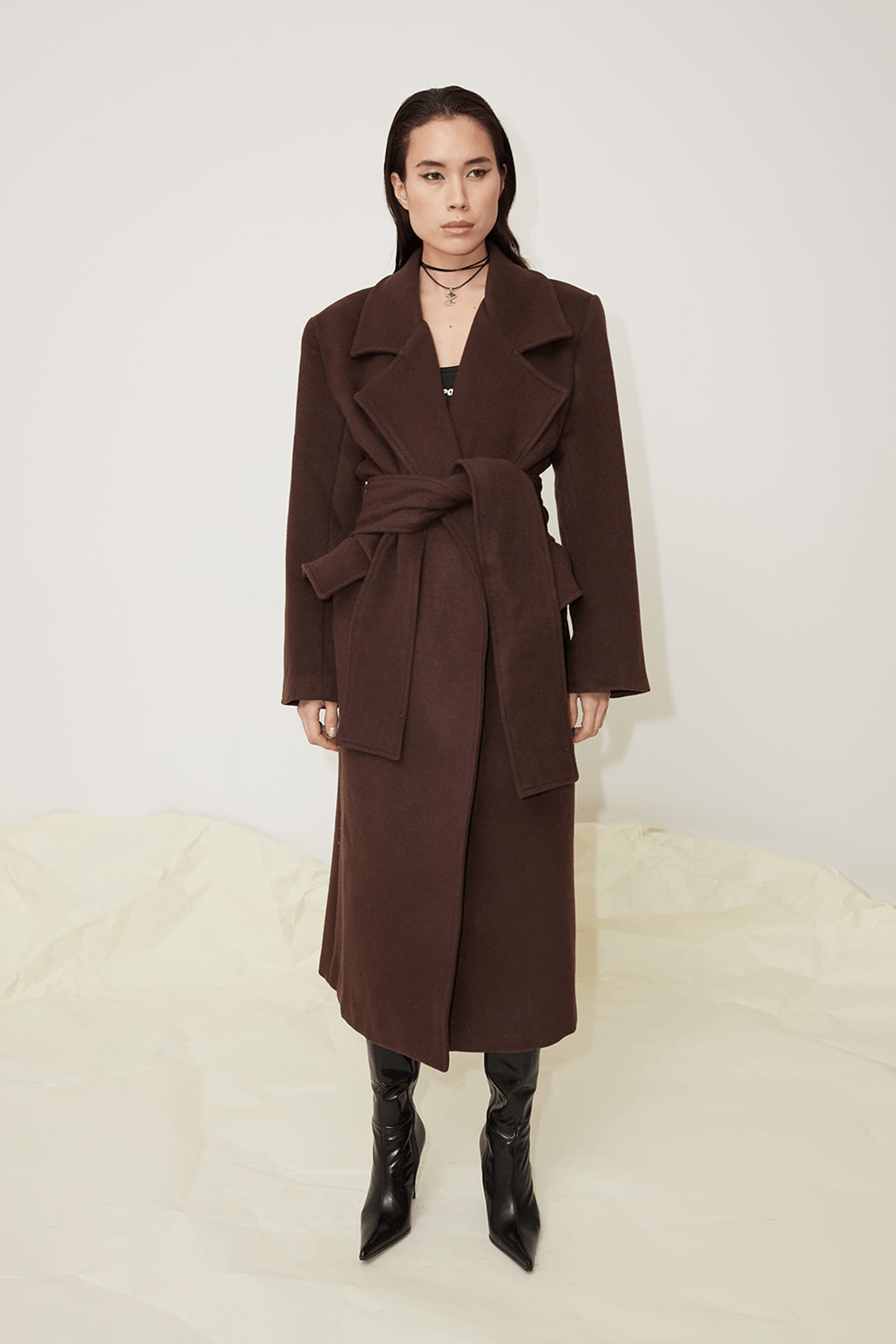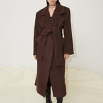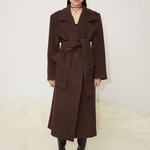 OpéraSPORT brings a relaxed feeling to tailoring highlighted by the Jackie coat. The wrap coat has a brushed finishing and is detailed with a belt. Cut from 100% recycled wool, it has an oversized fit with slightly oversized lapels, extra long length and slightly emphasized the waist, giving it a laid back mood.