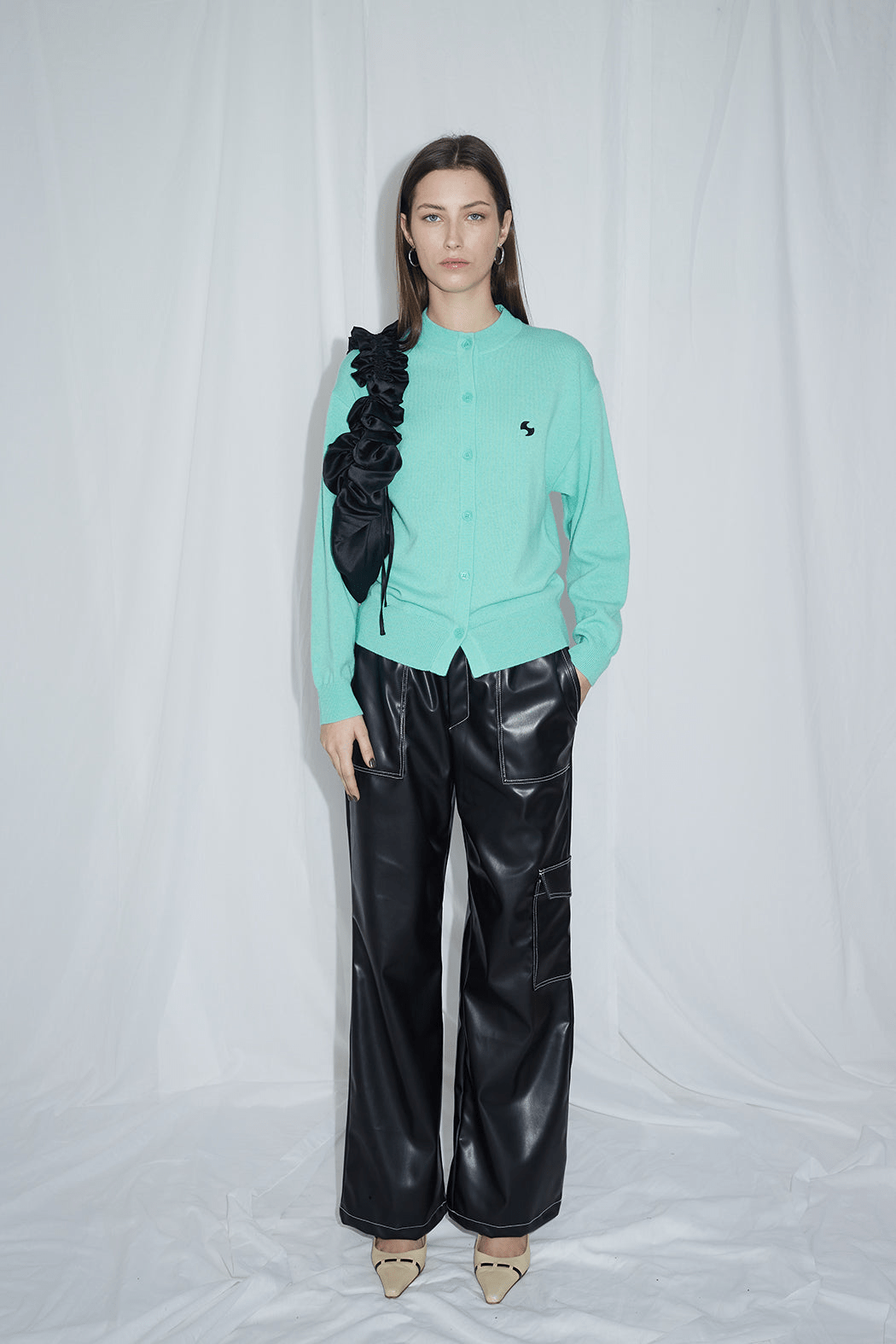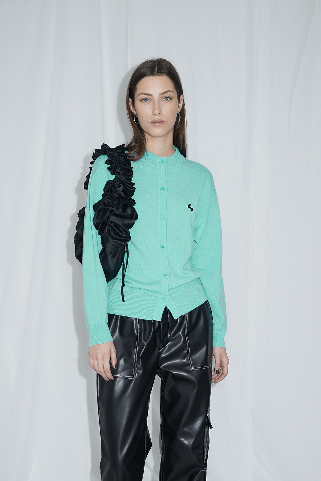 Constructed from soft 100% recycled wool, you will not want to take off the Kit cardigan, once you have tried it on. The cardigan has a relaxed silhouette with long sleeves and a round neckline. It closes at the front with button closure.
