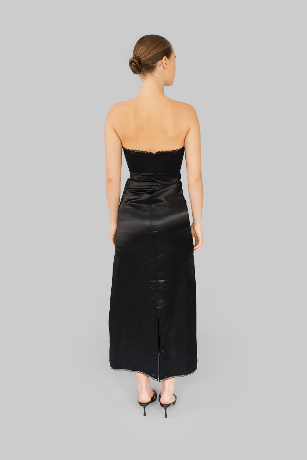 • Midi length with satin-like finish