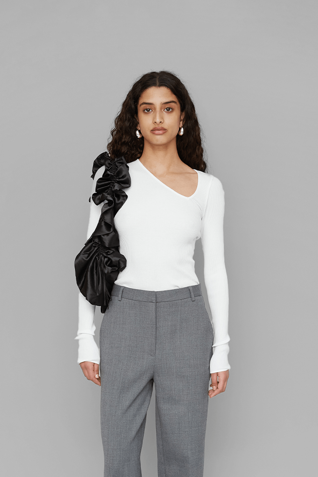 Our signature Eve Top is crafted from crisp 100% white organic cotton. The top with the asymmetrical neckline has been part of OpéraSPORT's DNA since the beginning. The seamless top closely hugs your figure and its stretchable fabric fits all shapes and sizes. Please note that our seamless styles are designed with significant stretch, which is why the measurements in our size guide show only minimal variation.