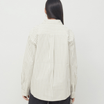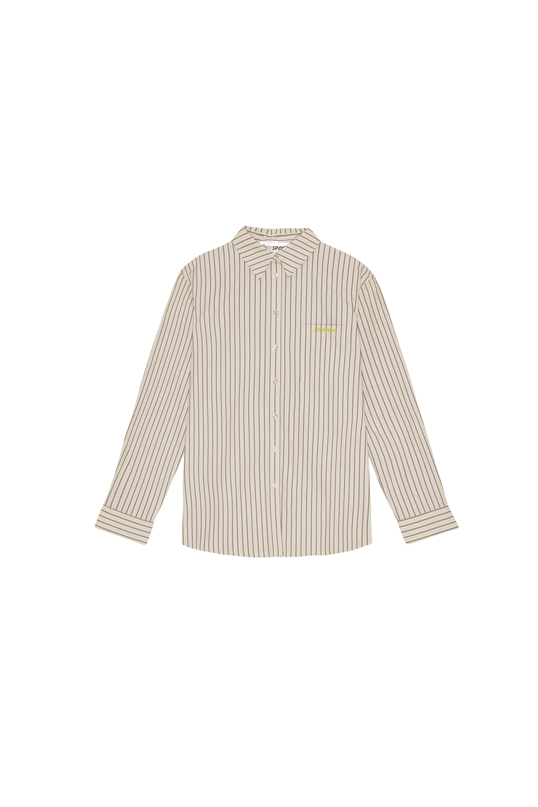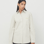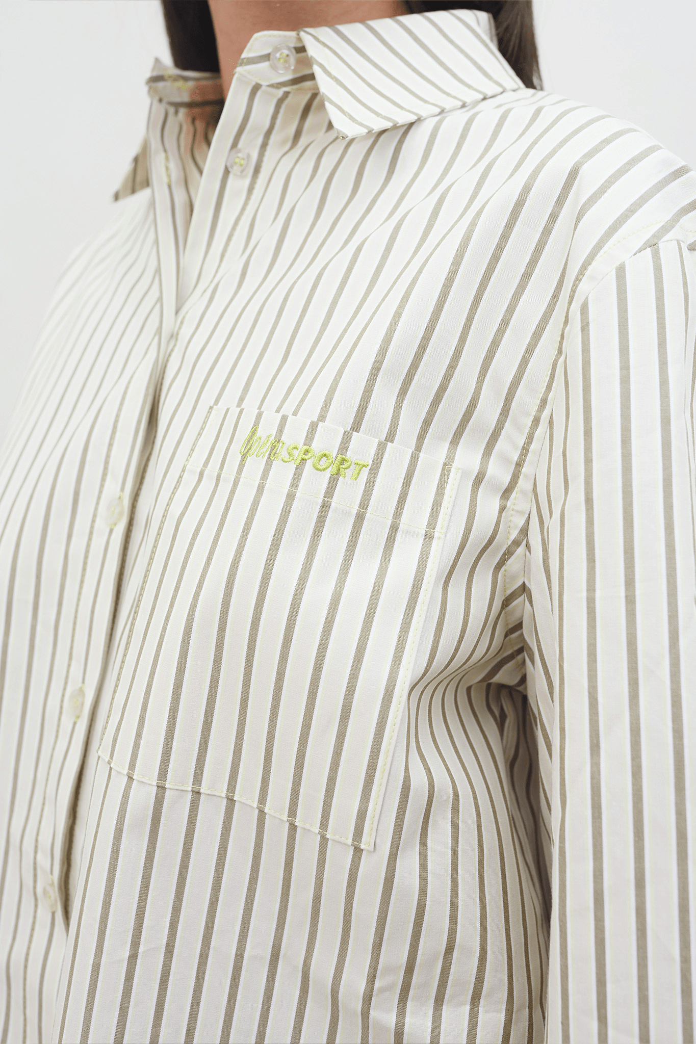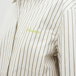 This season we have updated the Alex shirt with delicate oat milk colored stripes with the OpéraSPORT logo in lime. Crafted from crisp recycled cotton poplin, the shirt has an effortlessly chic, oversized silhouette with cuffs, a classic collar, and a button-down front. The shirt has one front pocket on the chest with the OpéraSPORT logo embroidered in lime.