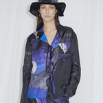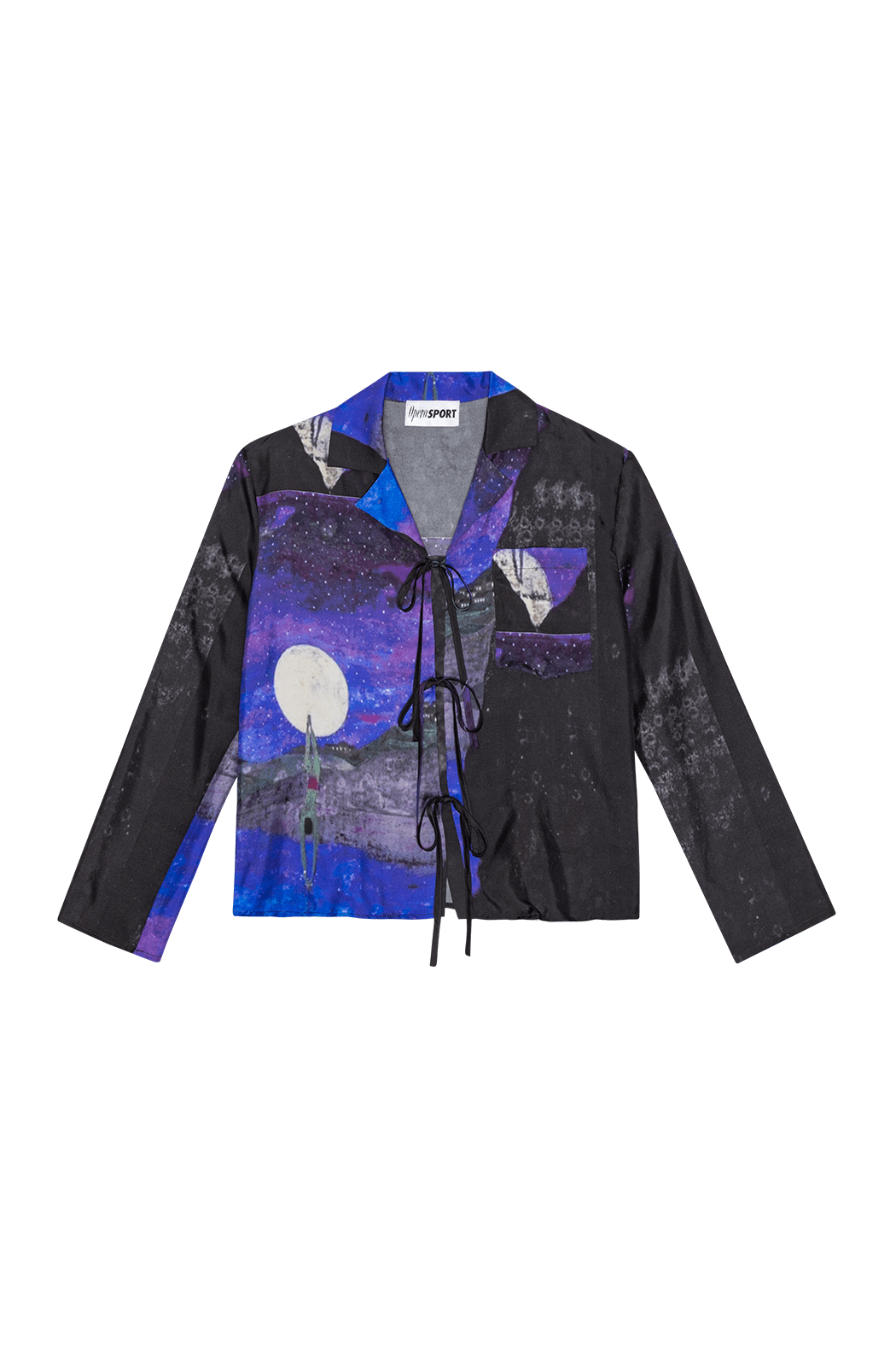 The Tavon shirt is crafted from 100% recycled silk with Tom Anholt's playful print. It has an oversize fit with long sleeves, a wide collar, and one front pocket. The shirt has ties that can either be left undone or knotted into a bow. Look no longer for your perfect wardrobe staple but with a twist.