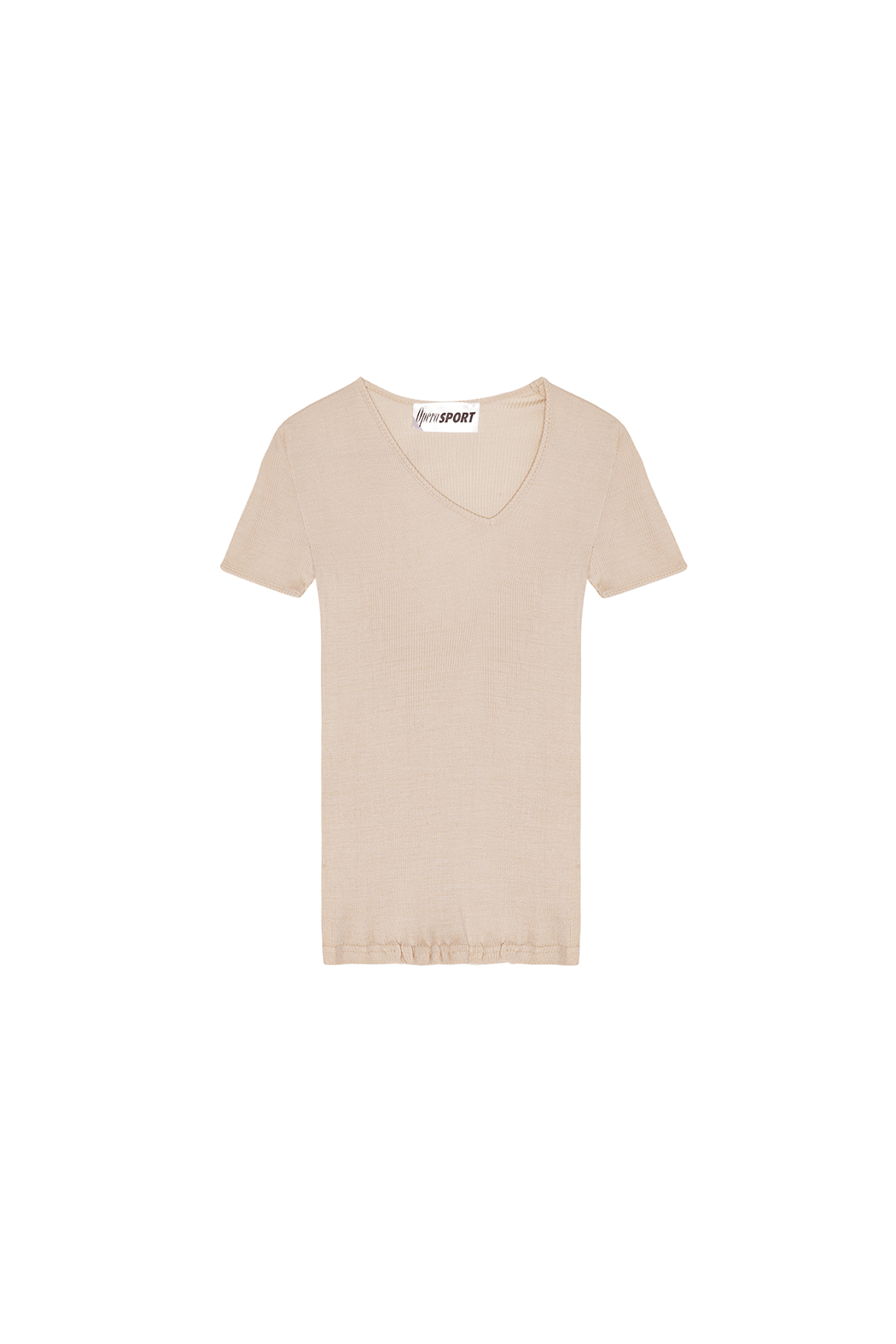 The Evelina seamless top is crafted from soft and stretchable 100% recycled silk. The top with the asymmetrical neckline has been part of OpéraSPORT's editions since the beginning. The seamless silk closely hugs your figure and fits all shapes and sizes. Evelina features a close fit, asymmetric V-neckline, straight hem, and all-over ribbed detailing. Please note that this garment is made from 100% recycled silk, which is why small knots can appear.