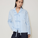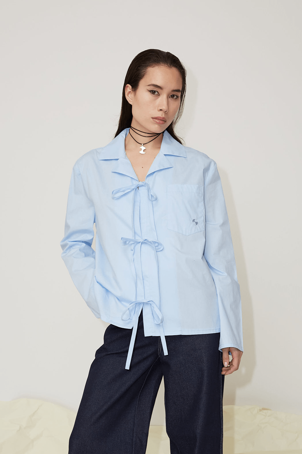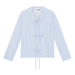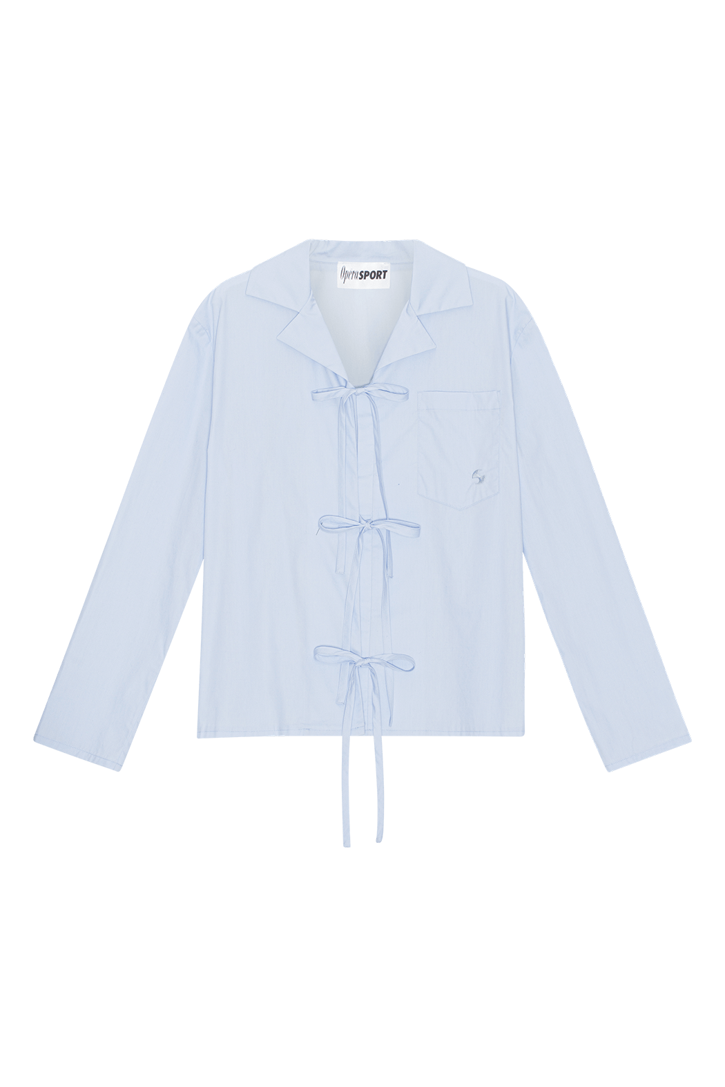 The Tavon shirt is crafted from crisp light blue poplin in 100% organic cotton. It has an oversize fit with long sleeves, a wide collar, and one front pocket embroidered with OpéraSPORT's signature logo. The shirt has ties that can either be left undone or knotted into a bow. Look no longer for your perfect wardrobe staple but with a twist.
