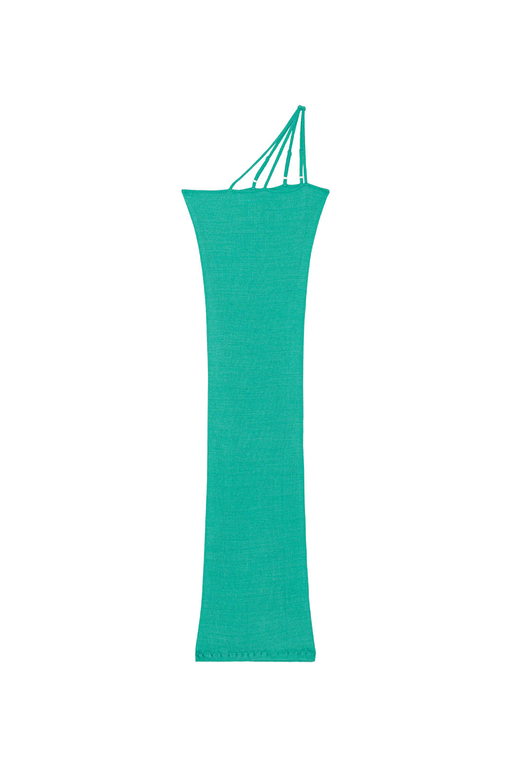 The Marratxi dress seamlessly blends versatility with its simple construction in 100% recycled seamless silk elevated by the 3 adjustable one-shoulder spaghetti straps.  The seamless silk closely hugs your figure and fits all shapes and sizes. Please note that this garment is made from 100% recycled silk, which is why small knots can appear.