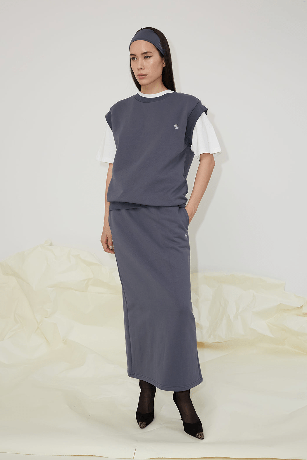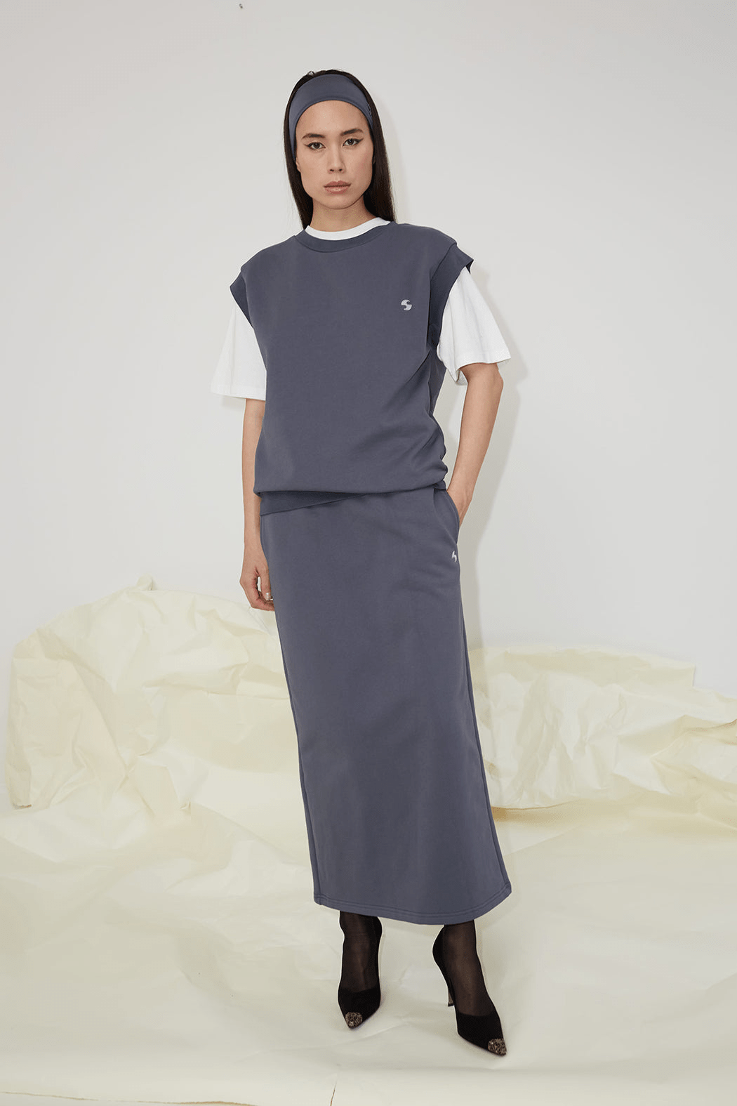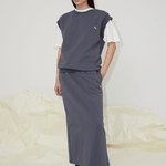 The Minerva skirt is crafted from a blend of organic cotton and recycled polyester. Framed by a flattering high waist, this midi skirt is cut to clean straight drape silhouette. Accented with OpéraSPORT's logo embroidered in white seam, the Minerva skirt encapsulates the label's sporty vision.