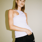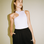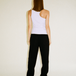 The eccentric Tina tank top is made from a comfy recycled-cotton jersey with a ribbed texture in lilac just in time for summer. The design features an asymmetrical design with a round neckline. Search no longer for your new summertime foundation piece.