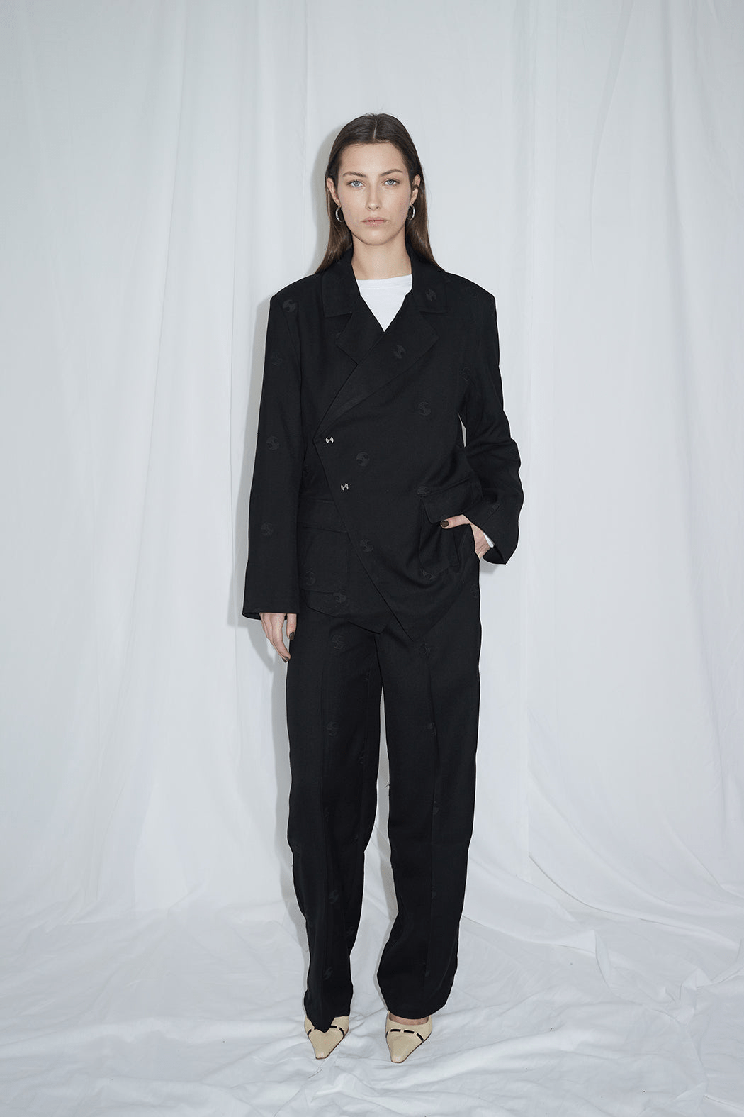 The Carter pants are crafted from 100% recycled wool with logo embroidery. They have a loose and casual fit with long legs, side pockets, belt loops, and button- and zip closure in the front. The pants can be worn with the Cameron blazer to create an elegant everyday suit.