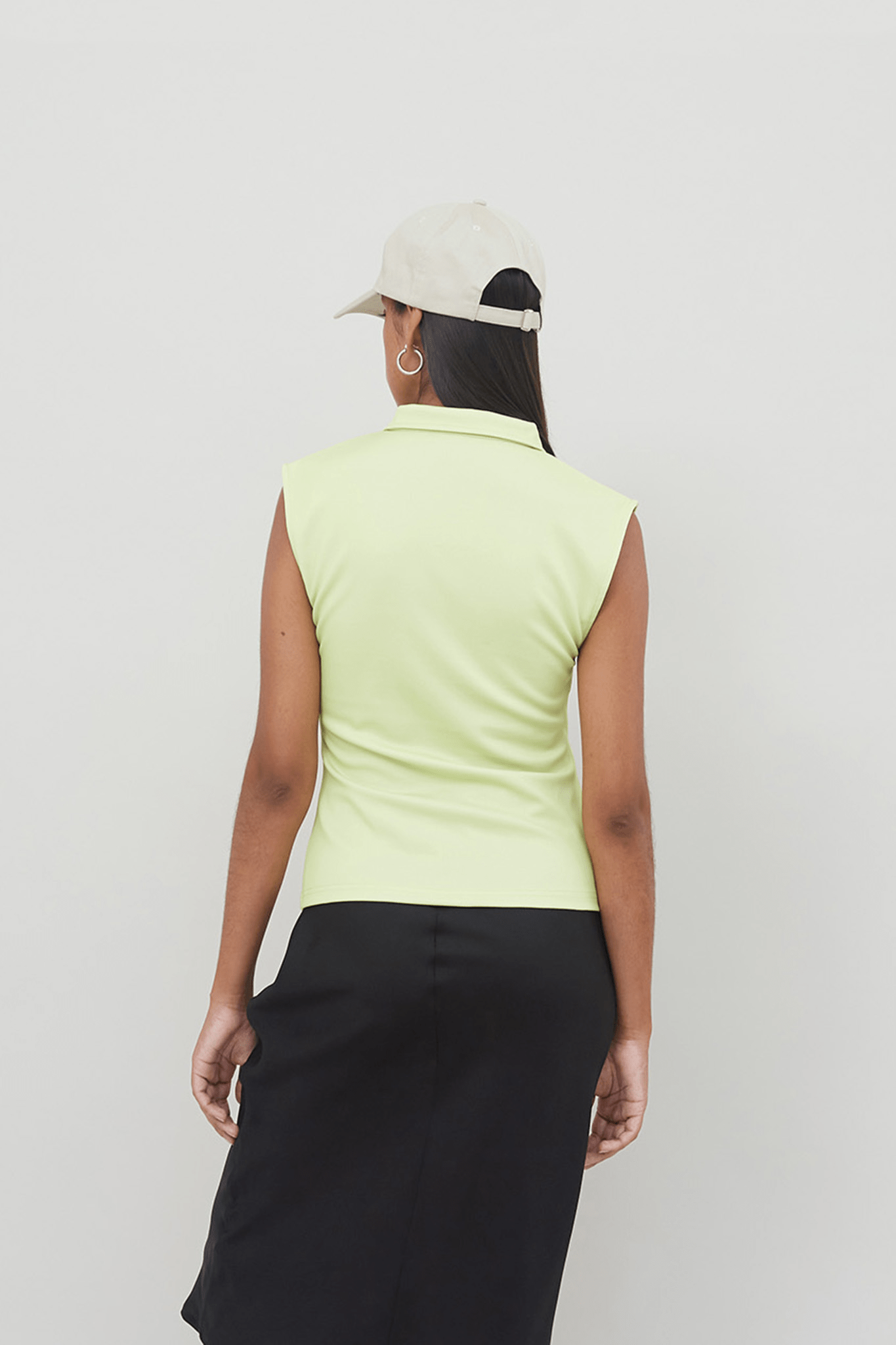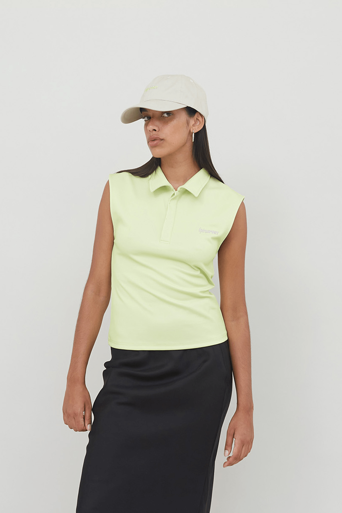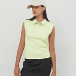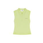 Our Cassia top is crafted from 100% recycled polyester in a shadow lime green color. Cassia is a sleeveless polo with partial button closure. It features a collar and the iconic OperáSPORT logo embroidered. Cassia is perfect for looking both sporty and elegant.