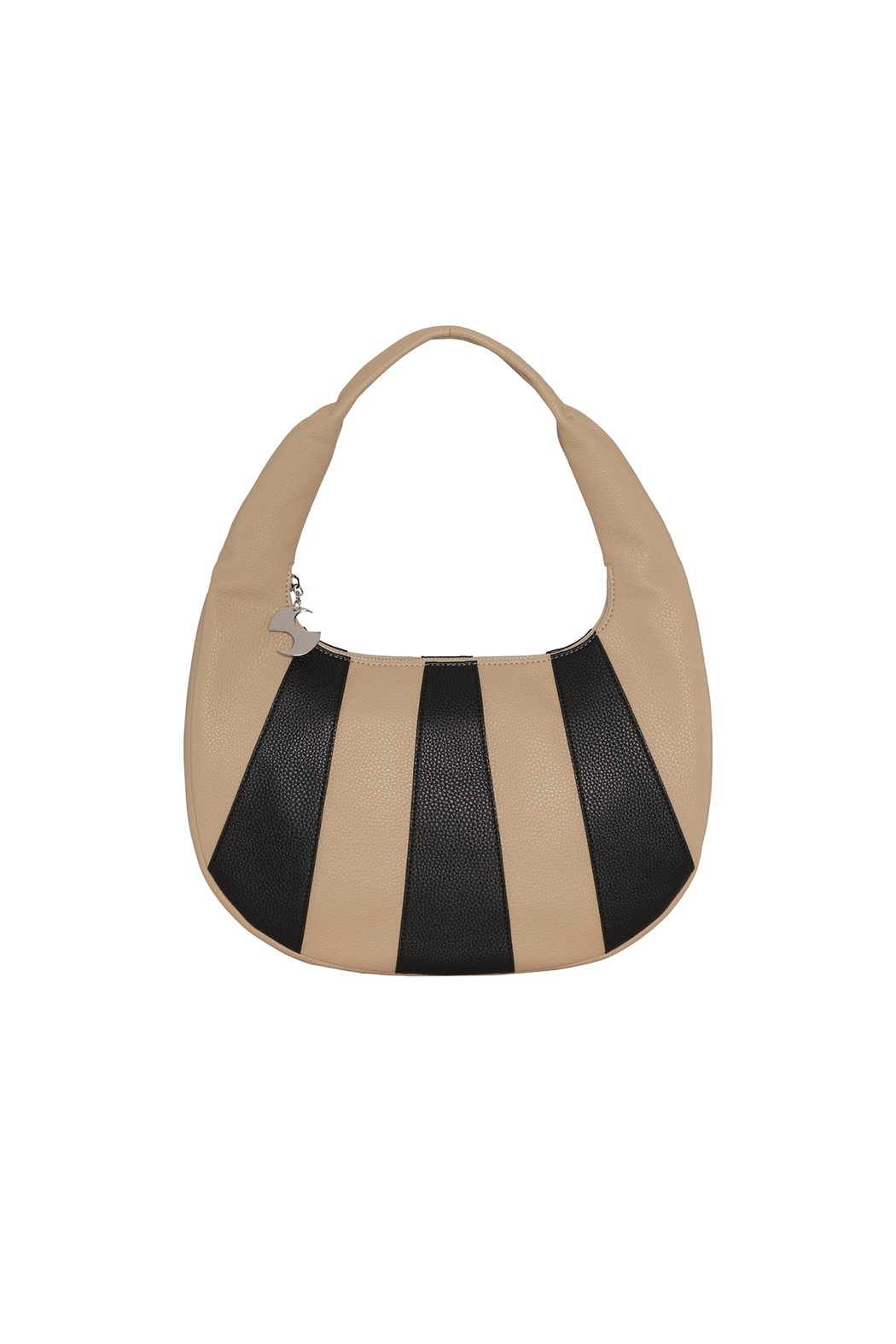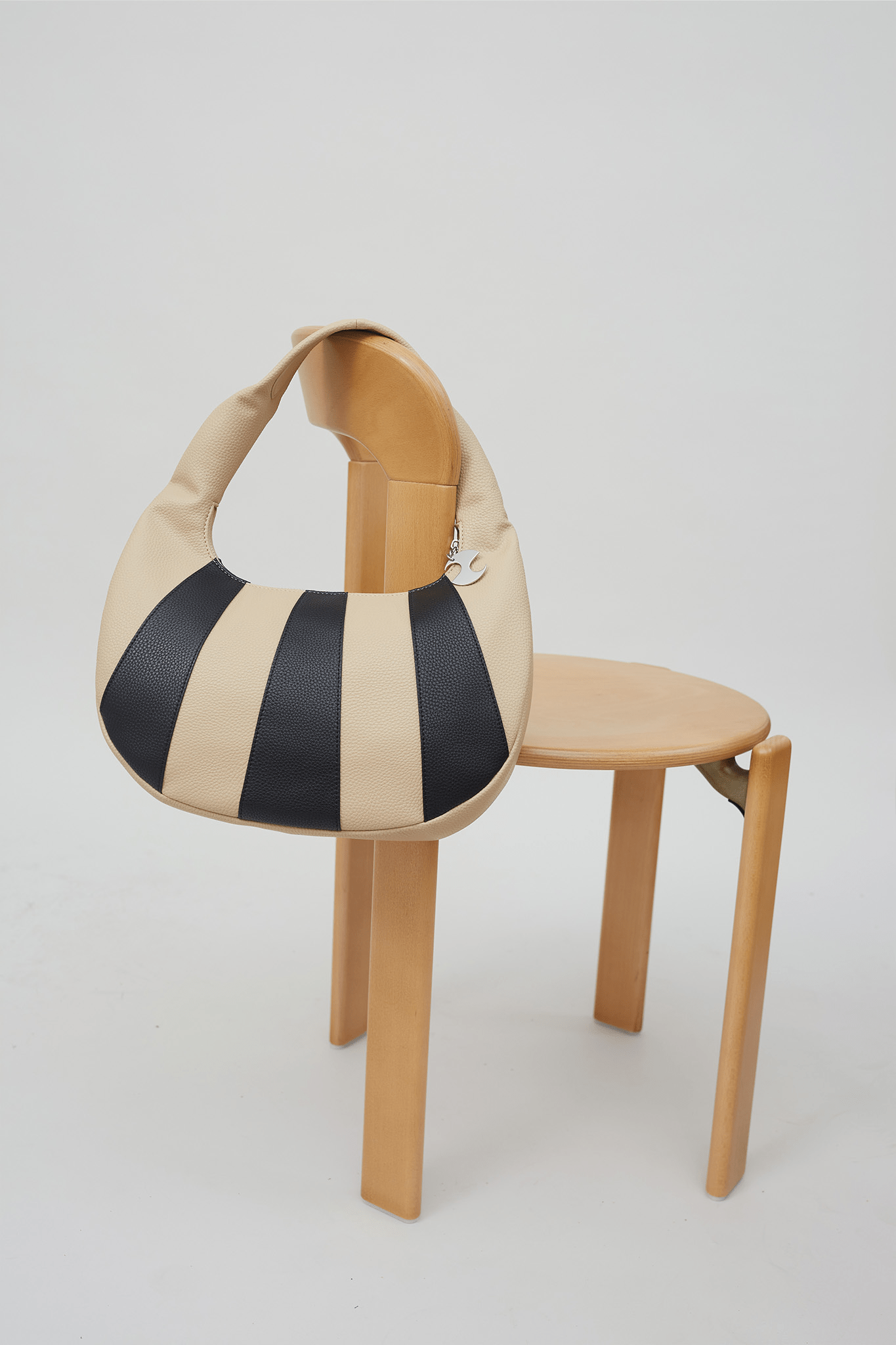 Introducing the Meadow Bag. Composed of a beautiful mix of biobased leather and recycled polyester. This Oat Milk colored bag has three black stripes that create an eye-catching contrast and the OpéraSPORT logo as the zipper. The bag can fit all your necessities and more.