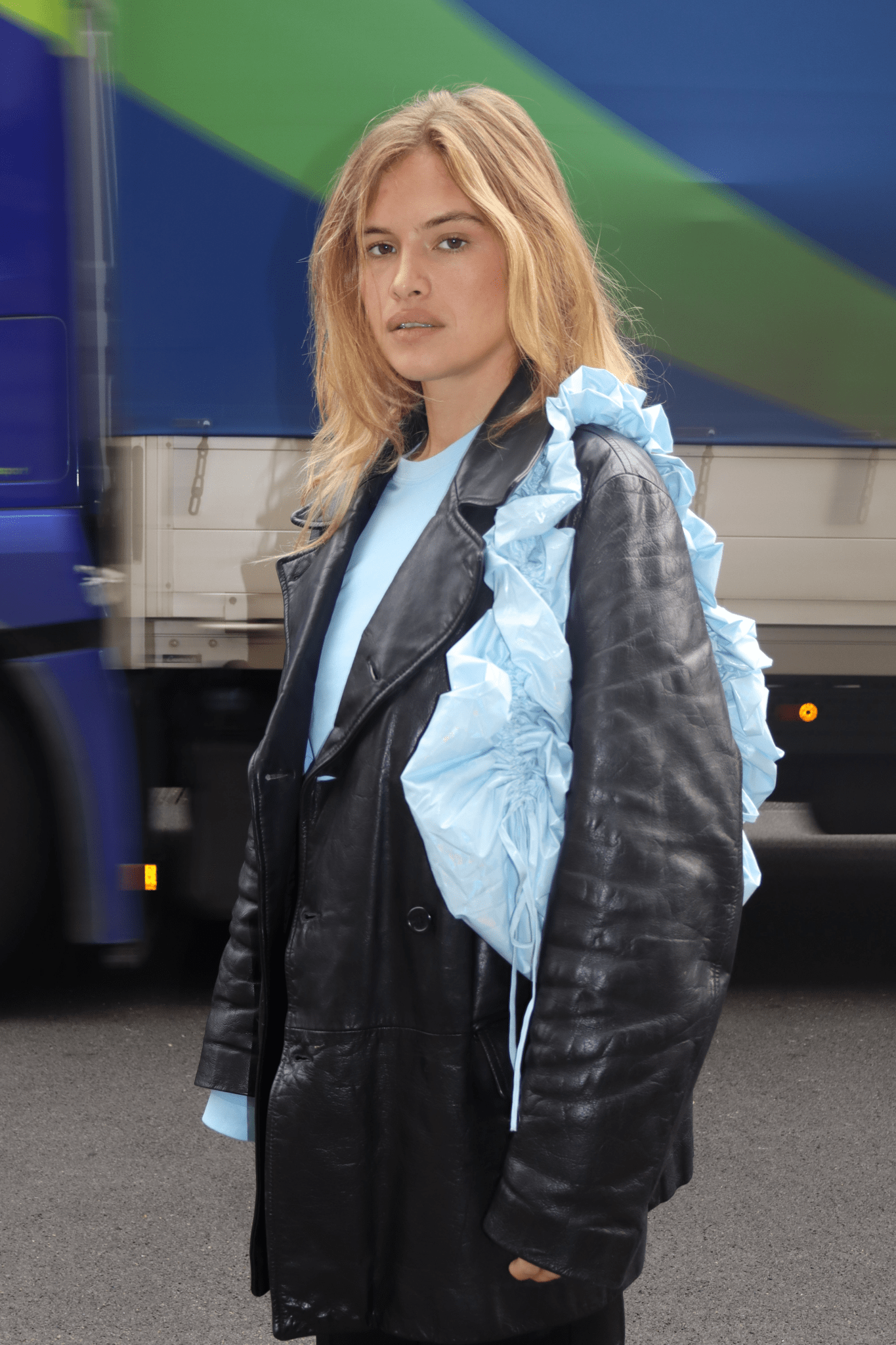 The eye-catching Shirley bag is crafted from 100% recycled polyester. Featuring an adjustable strap and ruffle detailing. Can be worn around the shoulder, crossbody, or as a handbag.