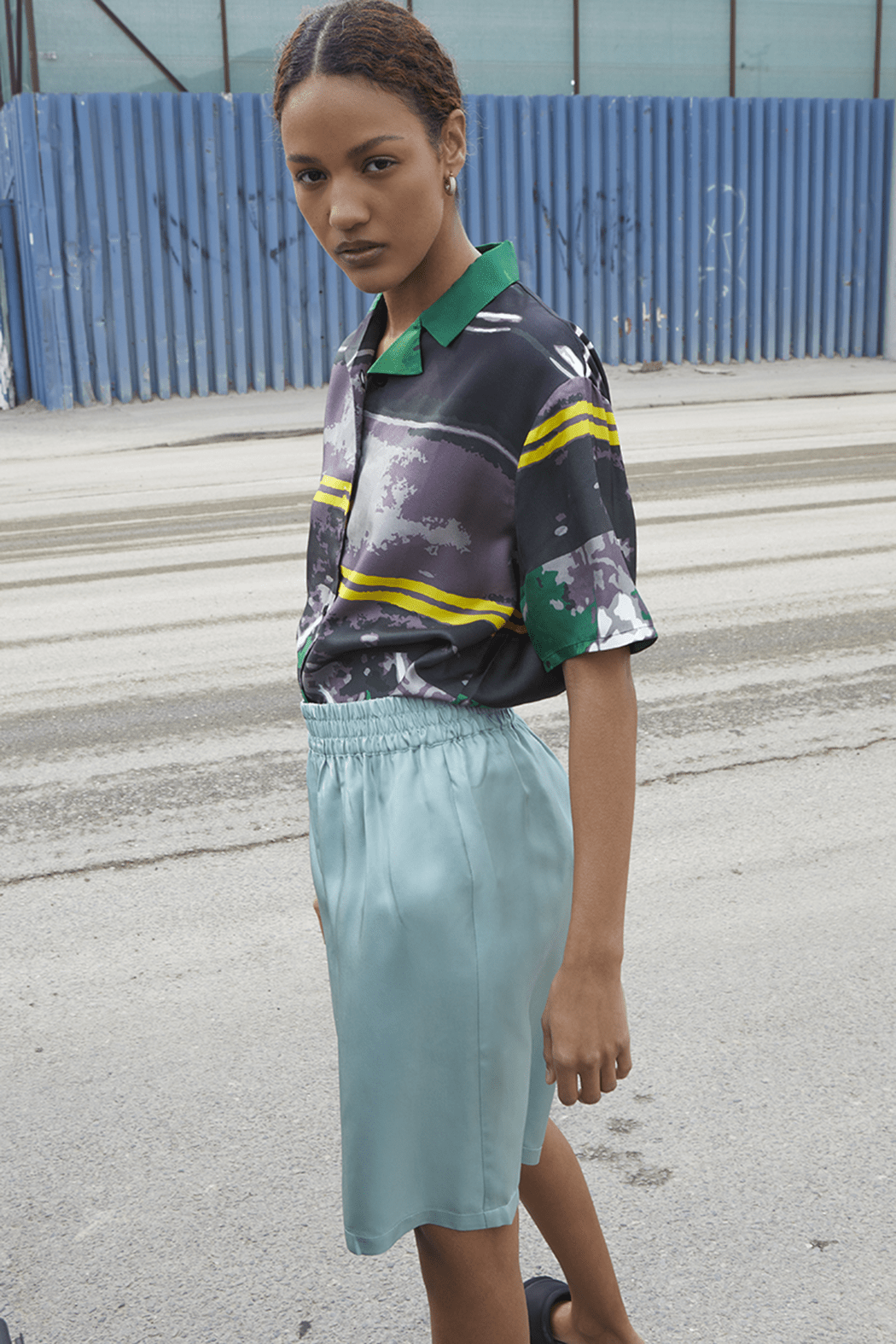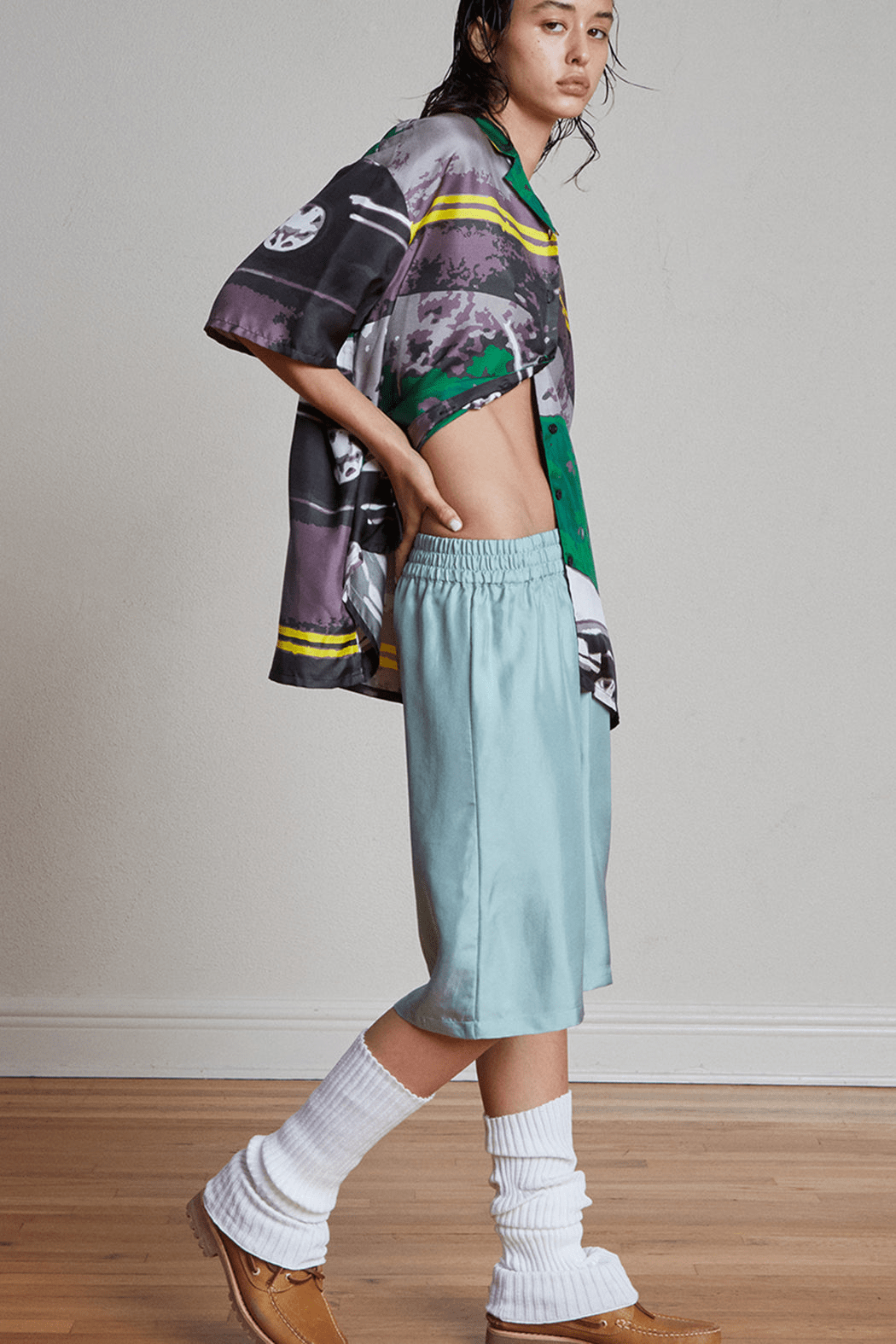 • Boxing short-inspired silhouette led by an elasticated high-rise waist