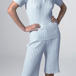 The Raquel shorts are crafted from blue rib-knitted silk and cotton fabric. They have a slightly fitted silhouette with short legs and an elastic band in the waist. The shorts look great with the Paloma polo or a bikini and a blazer for a hot summer night.