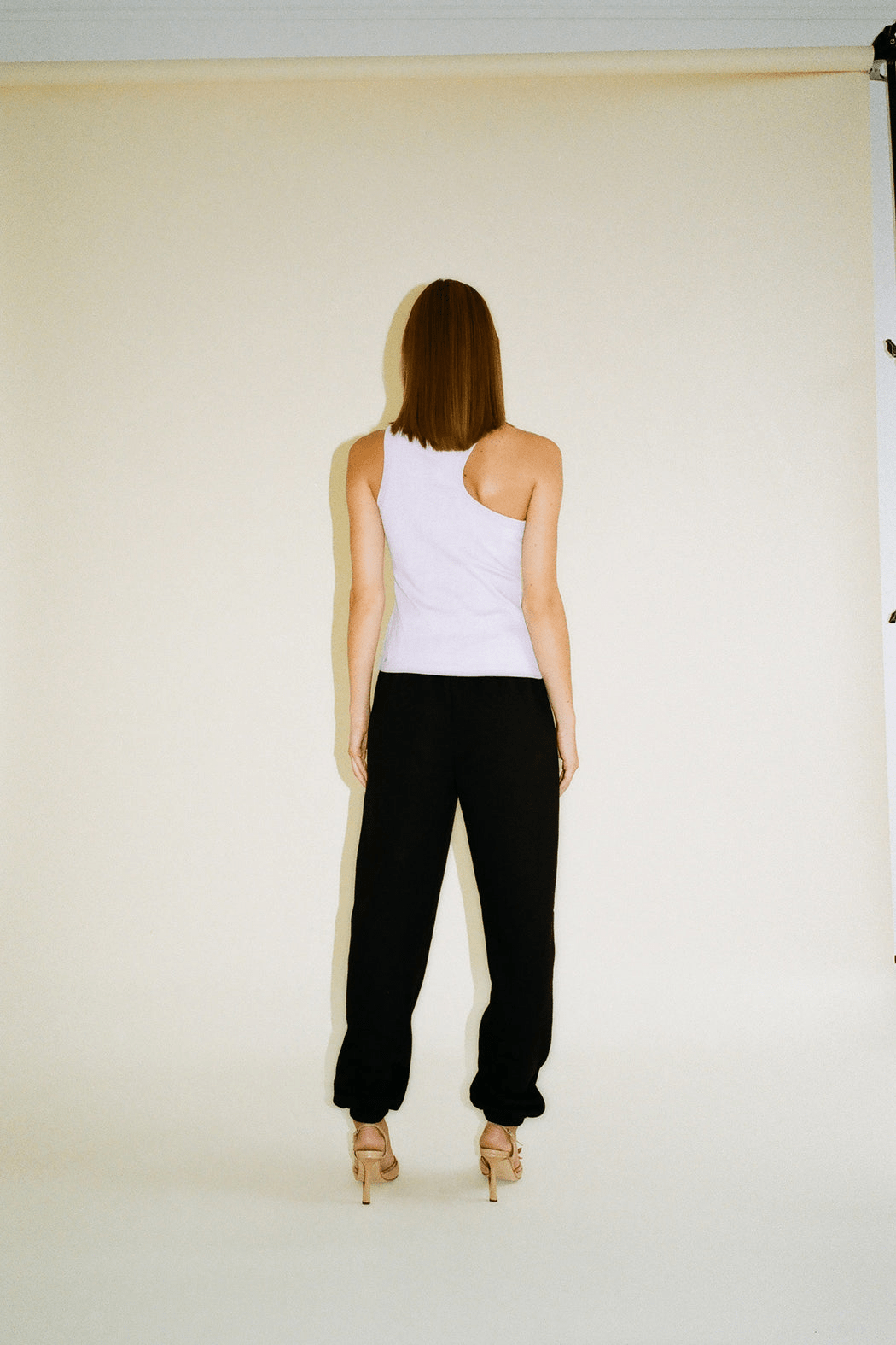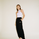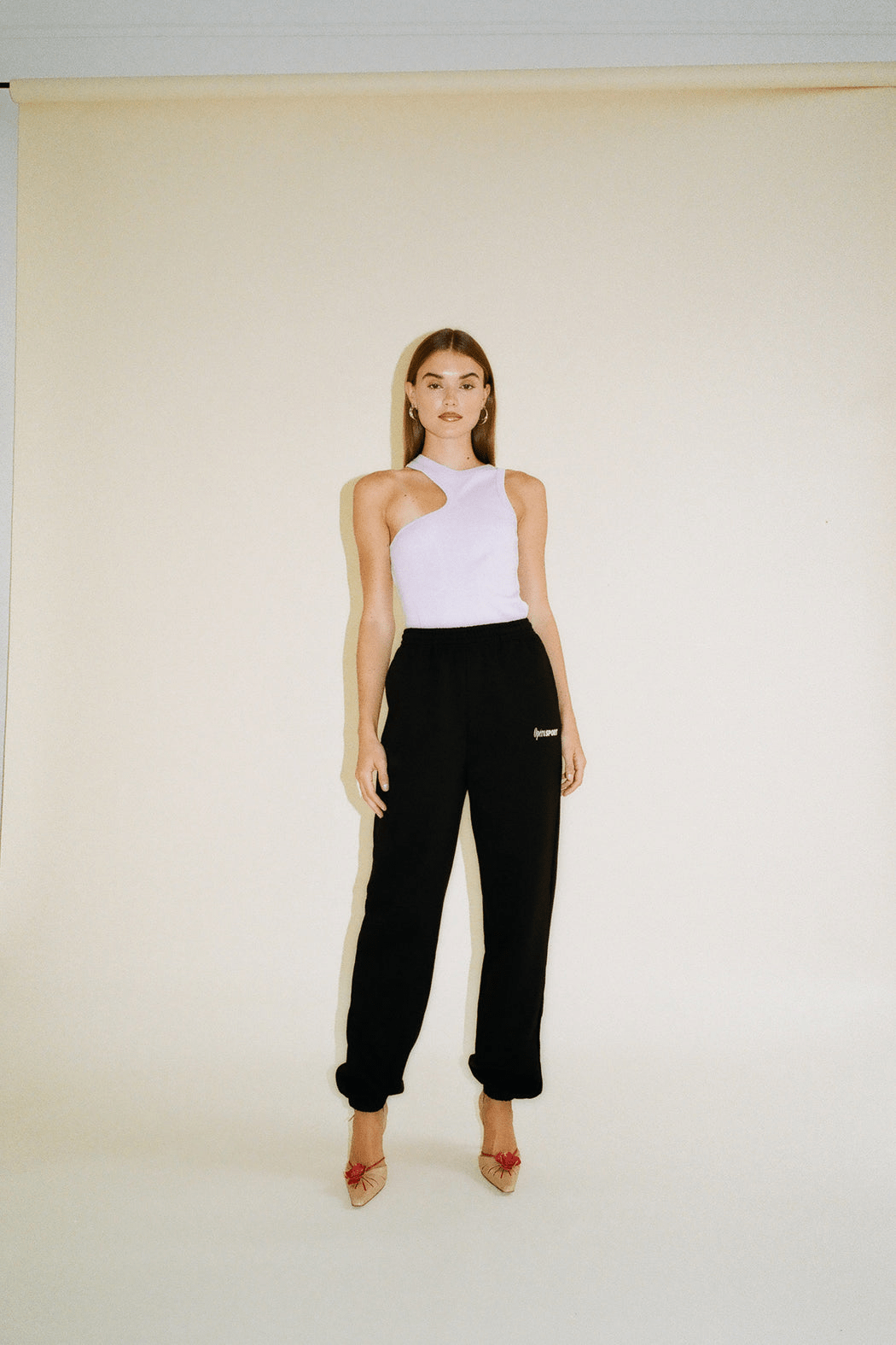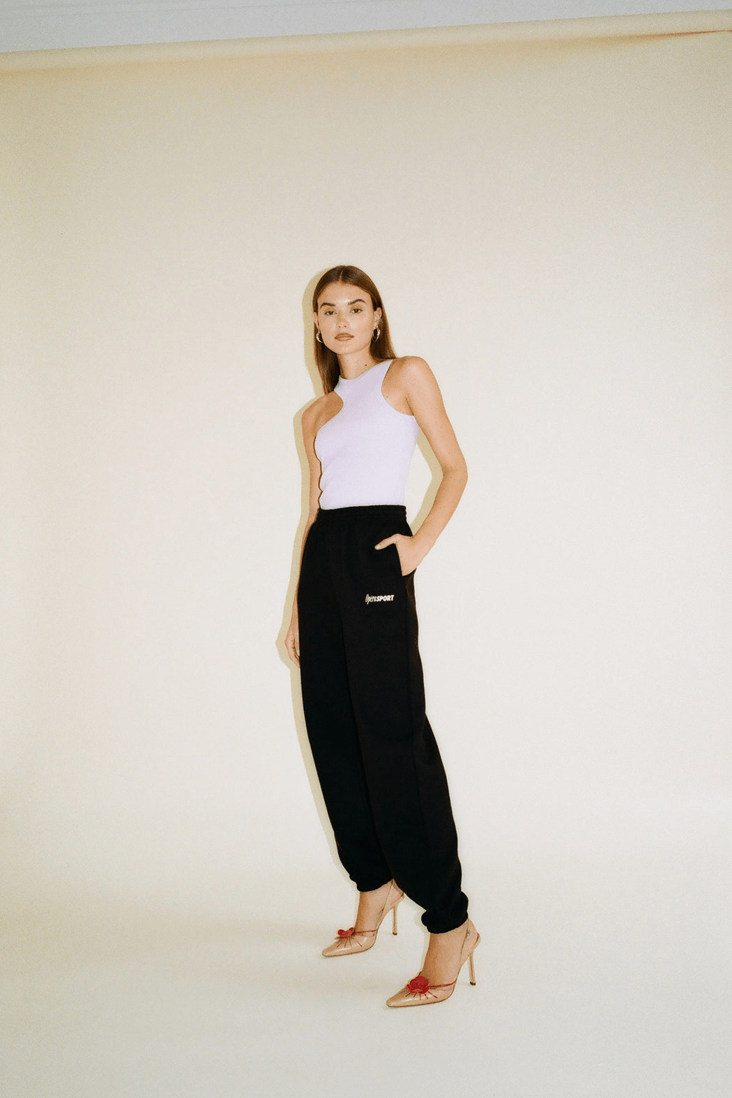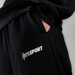 The Renard sweatpants are crafted from a soft blend of recycled polyester and organic cotton. It has a loose and slightly loose fit with side pockets and long legs with an embroidered logo on the left leg. The pants have an elasticated waist and cuffs.