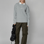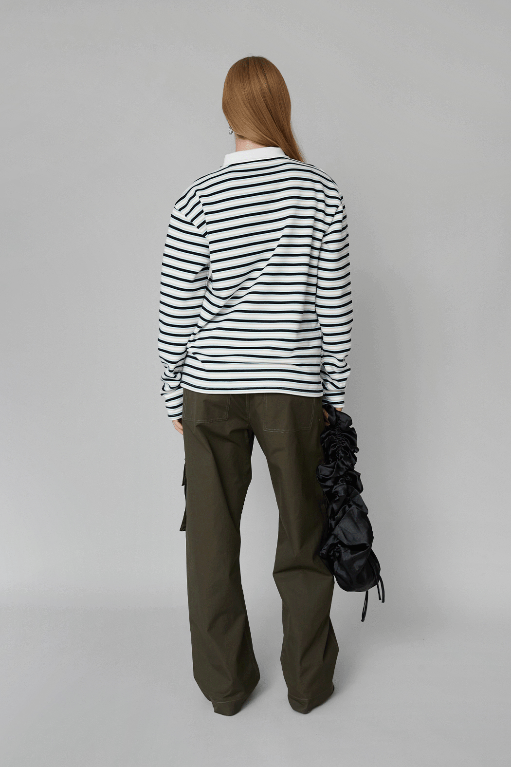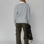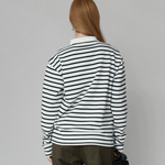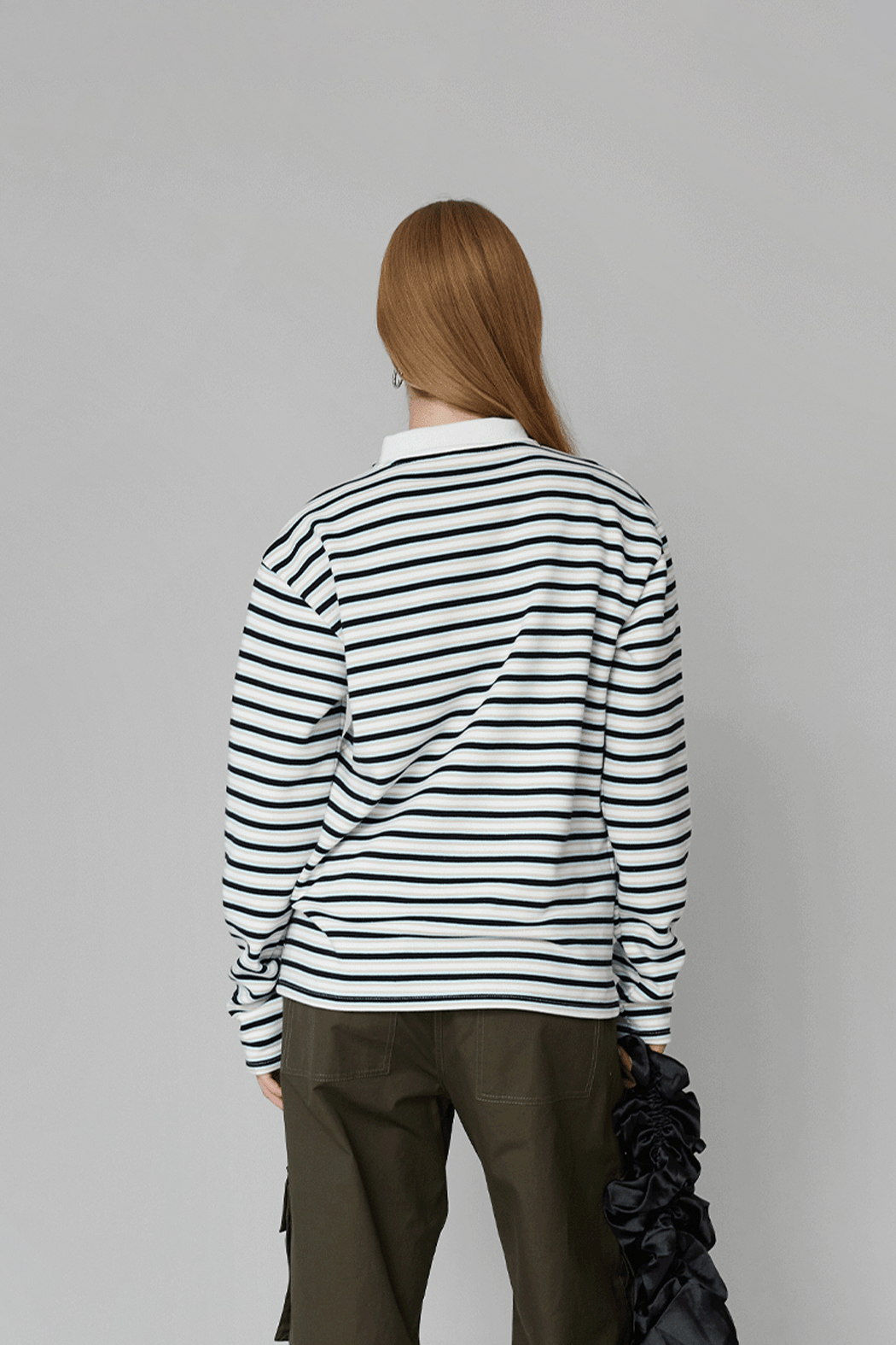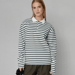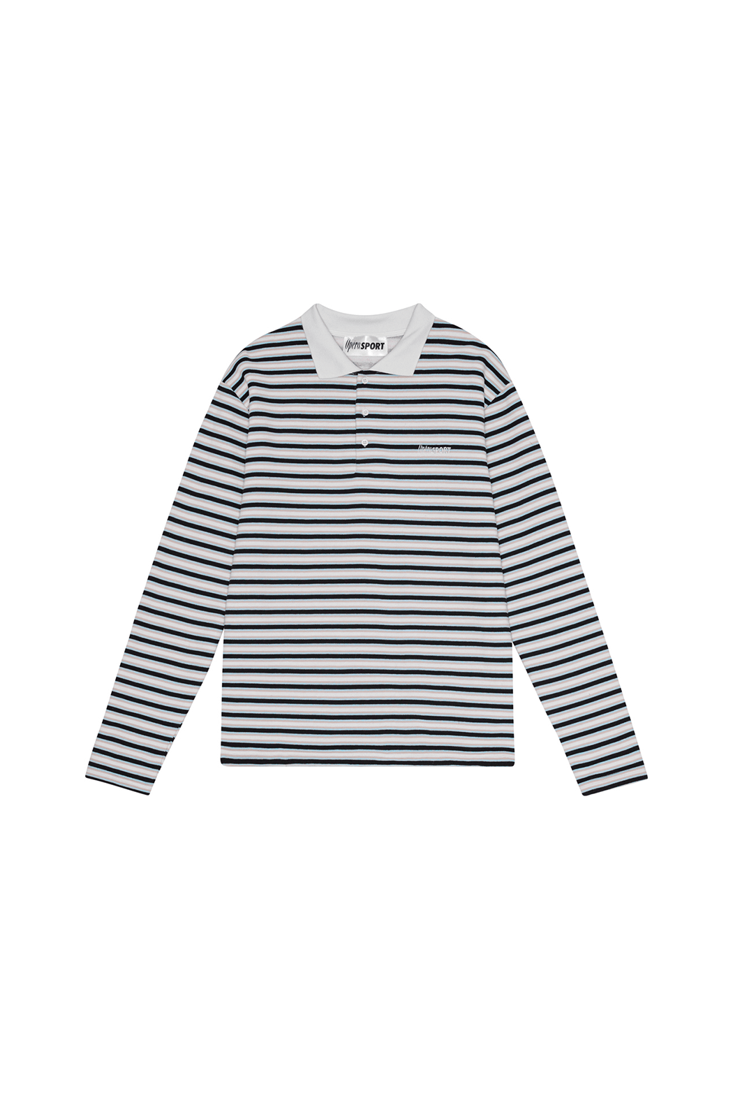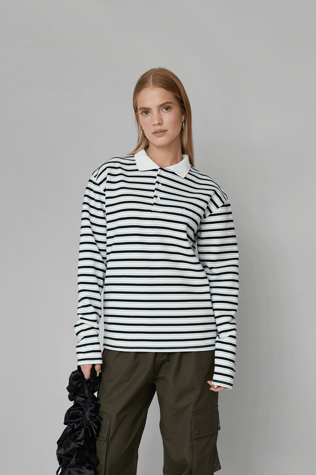 Our Roland Polo is crafted from a soft blend of 65% organic cotton and 35% recycled polyester. The black and white polo with nuances of blue and beige, features a quarter button-up design with a placket, a collar, a straight hem, and OpéraSPORT branding on the chest. The striped Roland will keep you warm while maintaining an elegant look.
