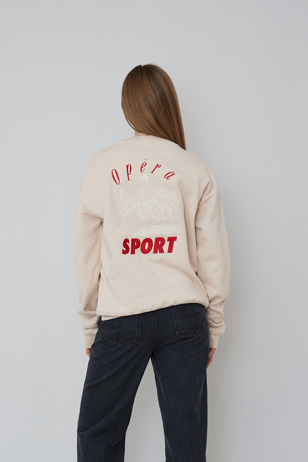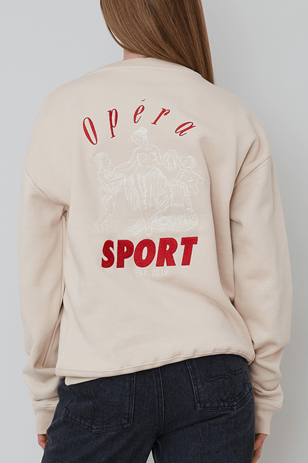 Our Rolando Unisex Sweatshirt is back in beige with eye-catching red and white embroidered details on the back. The embroidery is inspired by the intricate shapes of baroque architecture with Opérasport branding both front and back. This is the perfect sweatshirt for comfort and style.
