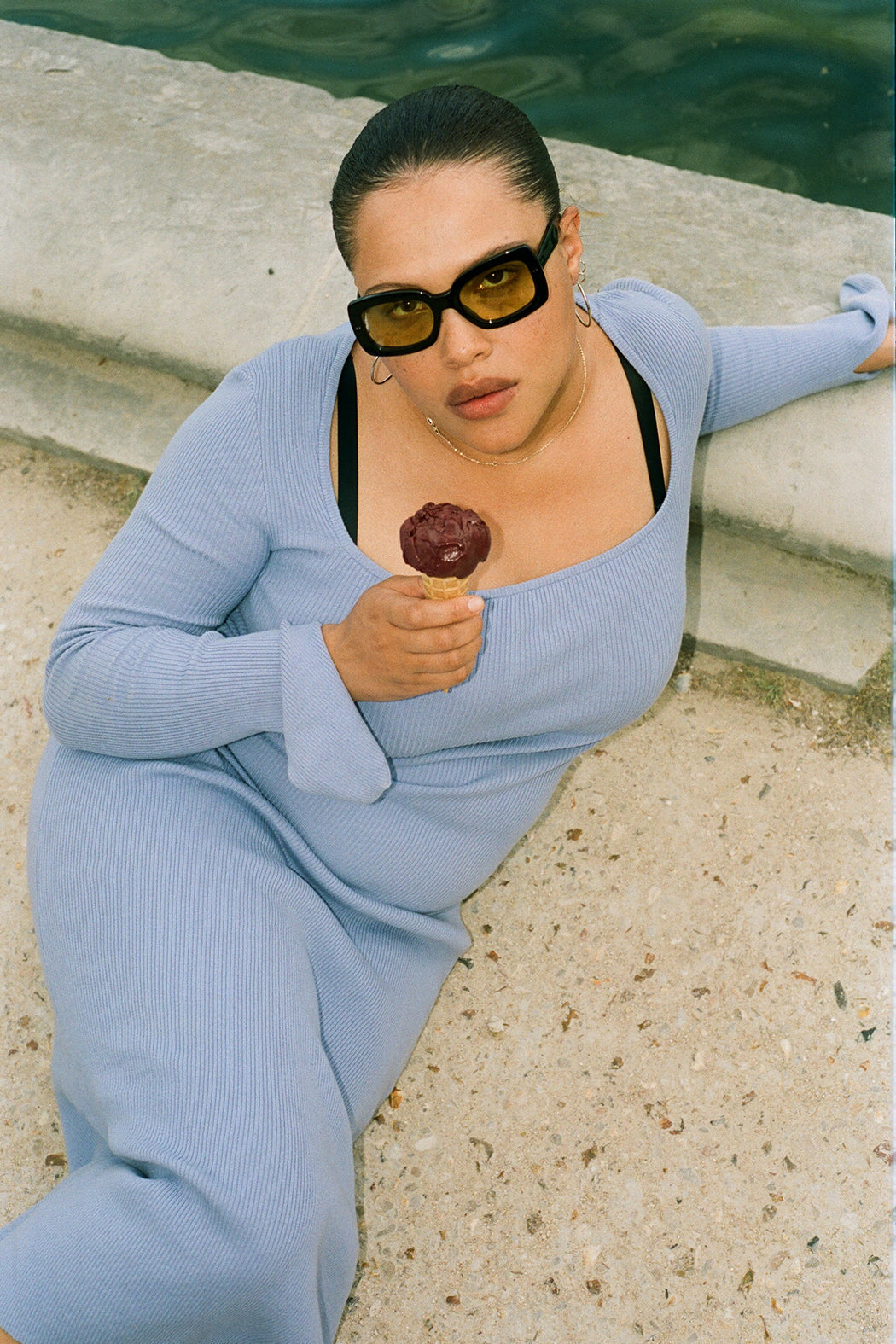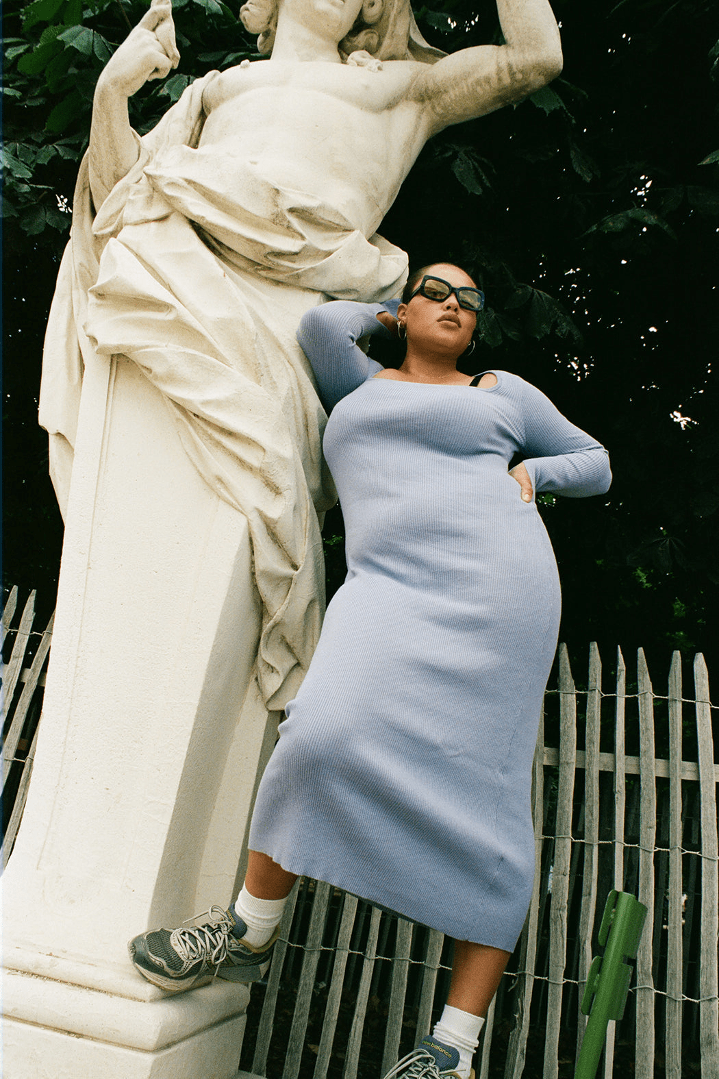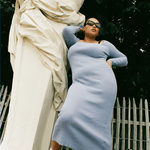 The elegant Rosario rib dress is made from stretchable fabric in 100% organic cotton. The dress is a part of the limited edition collection with Alva Claire. The dress has a slightly fitted silhouette with long sleeves, a square neckline, and unique sewn-in glove detail.