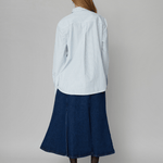 Alex is crafted from crisp blue and white 50% organic cotton and 50% recycled polyester. The Alex unisex shirt revises the classic shirt design. It has an effortlessly chic, oversized silhouette with cuffs, a classic collar, and a button-down front. The shirt has one front pocket on the chest with the signature OpéraSPORT logo embroidered in white.