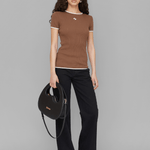 Our beautiful Thea Bag is crafted from 66% biobased leather created from leftover apple peel and 34% PU leather. The bag features a small pocket inside, a beautiful, unique and asymmetrical shape with a fixed handle and an adjustable strap for your desired lengh. It is decorated with a gold zip closure and OpéraSPORT branding on the front.
