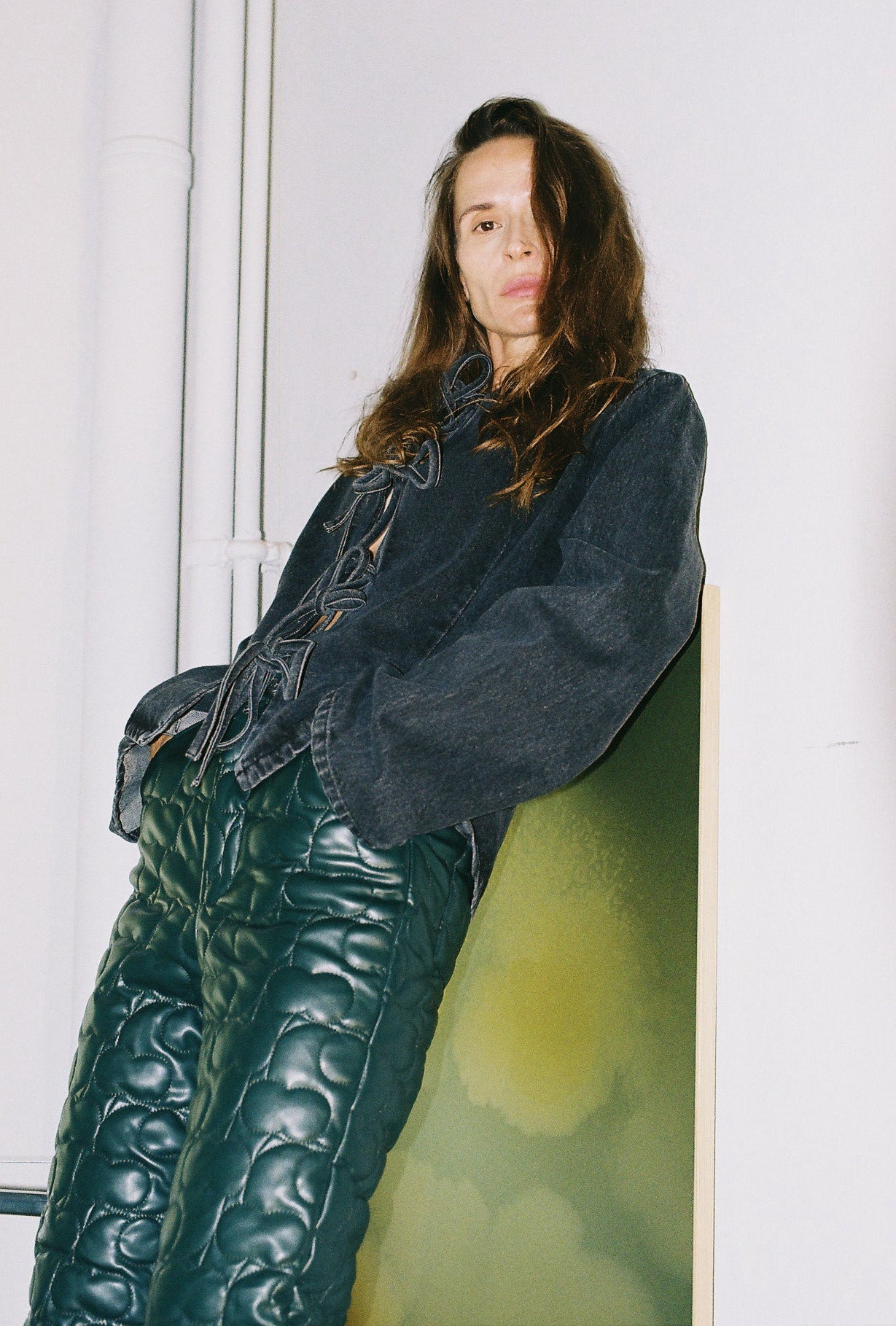 I: Of course, it's another process because you go on a shoot and then you are on. I guess it's a physical thing. I feel very privileged that I can work as a model because... I guess how should I phrase it? Modeling gives me totally creative freedom in my artwork, because I get an income from modeling and then I can be totally free. And I think as an artist that is such a privilege and I feel very lucky because fashion is also a lot of fun and there's a lot of amazing people in that world. So being able to go on a shoot and work and make some money for one day or two and then go back to my studio and do something else that I also love is... I'm very grateful.