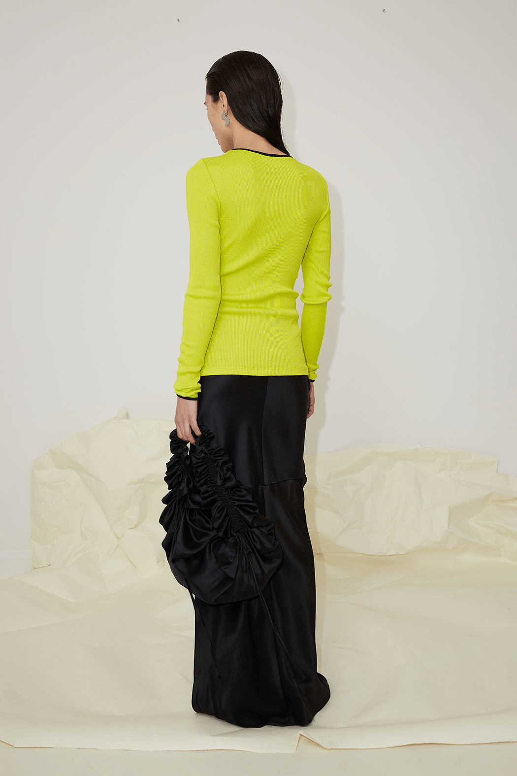 In signature OpéraSPORT style, the Celèstine long skirt is crafted from 100% black recycled silk and has a timeless, minimal design. A cut with gentle volumes, this beautiful feminine piece adds polished elegance to your wardrobe. It has a figure-skimming silhouette and features a flattering, slightly fluted fit with a lustrous satin finish. Endlessly versatile, the Celèstine long skirt will become a wardrobe staple.
