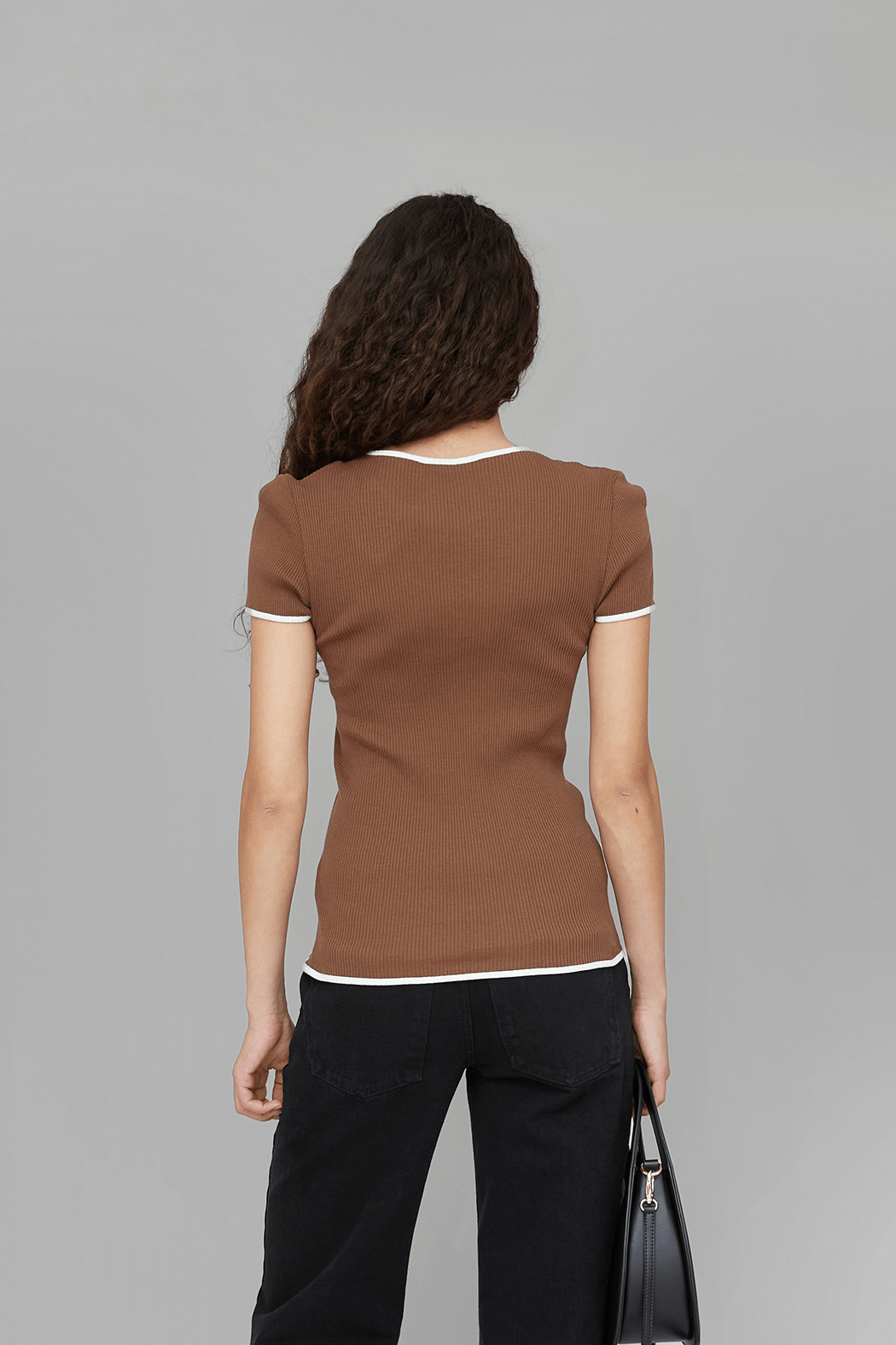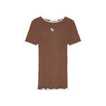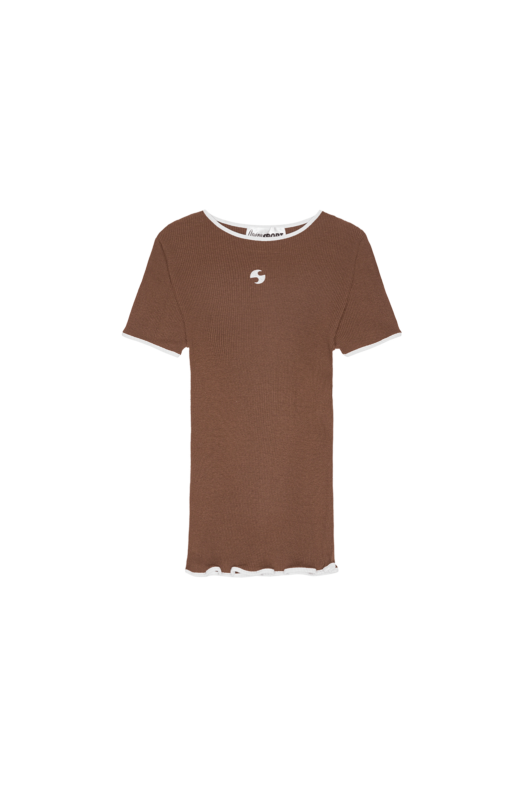 The Jaya Top is crafted from 100% soft organic cotton. This seamless style has a fitted silhouette that hugs the figure while remaining versatile for everyday wear. Designed in brown with contrasting white hems, it features the embroidered OpéraSPORT logo centered on the chest.