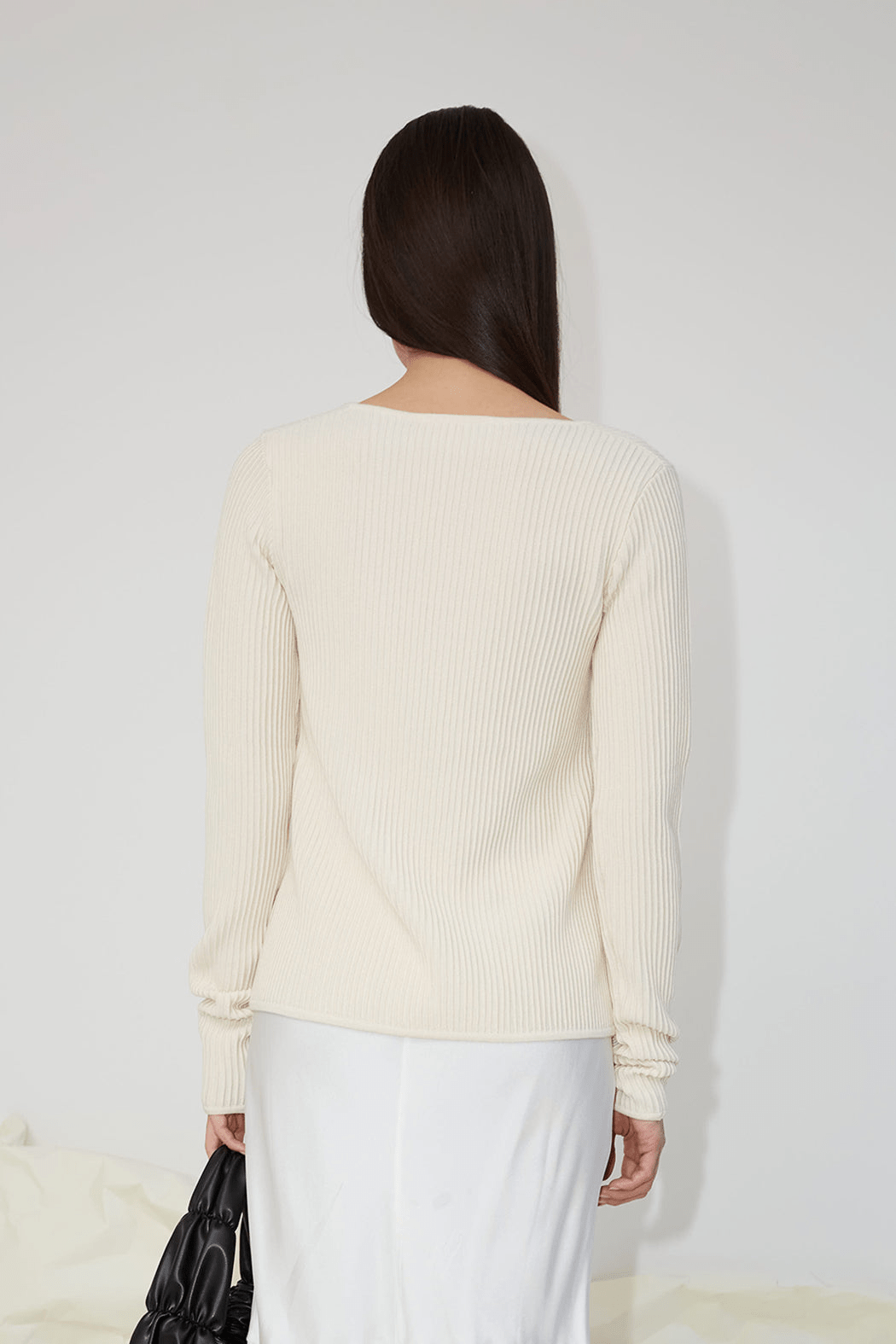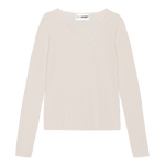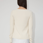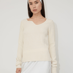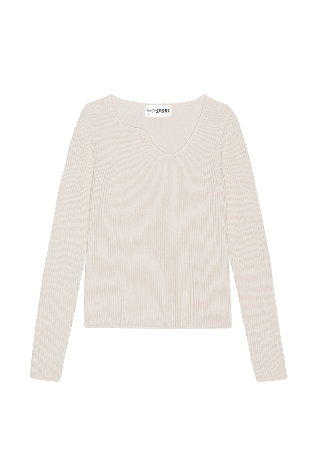 OpéraSPORT imbues this white ribbed-knit cardigan with a sensual appeal, seen in the asymmetrical neckline and long sleeves. It is crafted from recycled silk and wool and knitted with a verticle rib pattern and is perfect for evening wear.