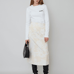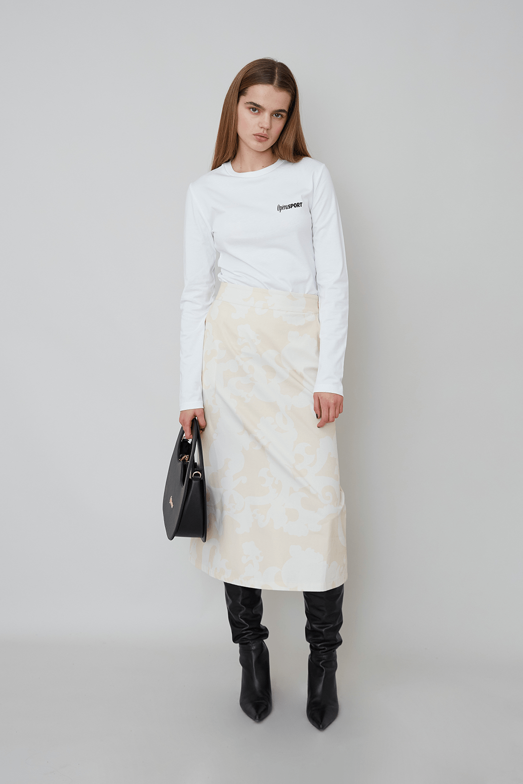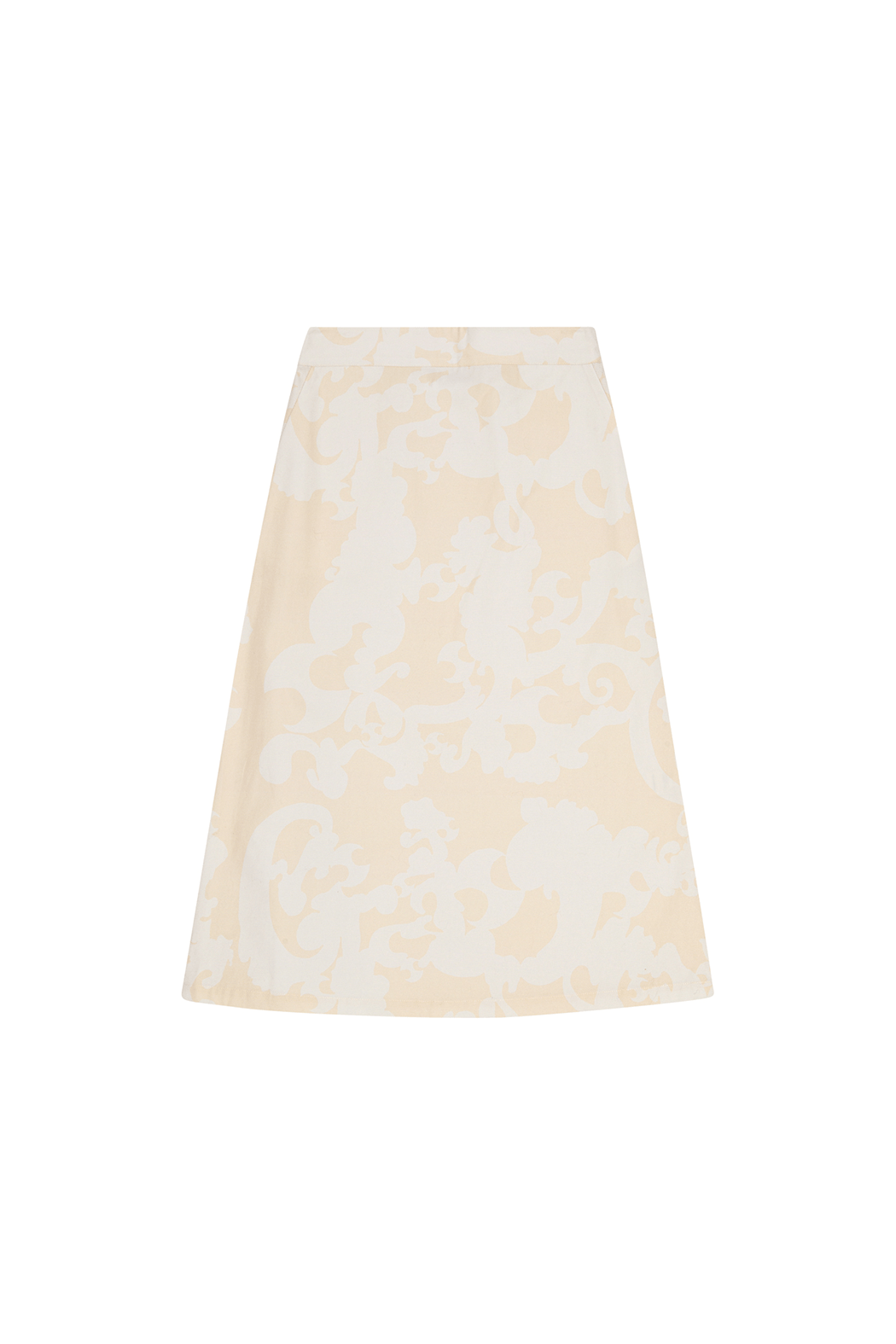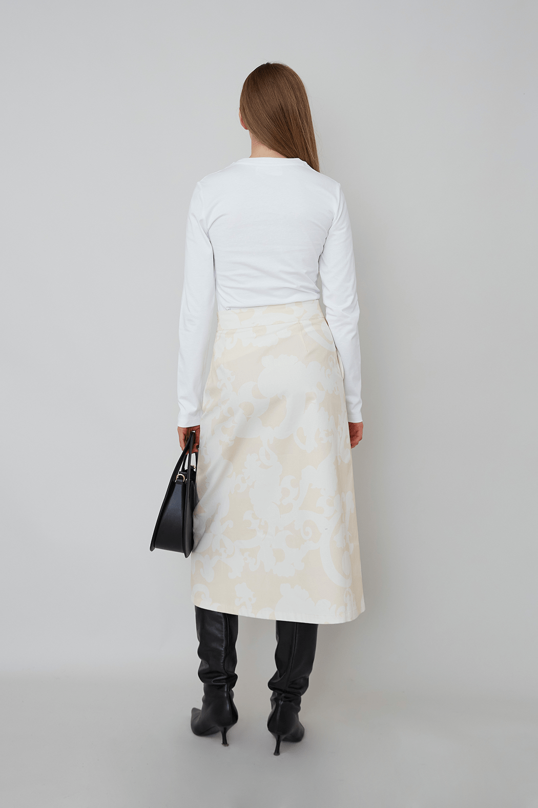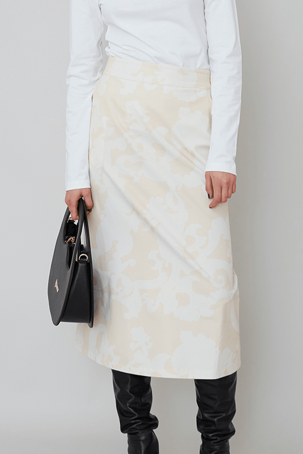 Our Flora Shirt is crafted from 100% recycled cotton. The skirt features a below the knee length with a side zipper for fastening. Floria is decorated with all over beautiful prints inspired by the intricate shapes of baroque architecture.