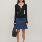 The Alina skirt is crafted from luxurious 100% recycled wool. It has an A-line silhouette and knee-length design with one front pocket and a wide york. The skirt has a zip closure at the back.