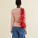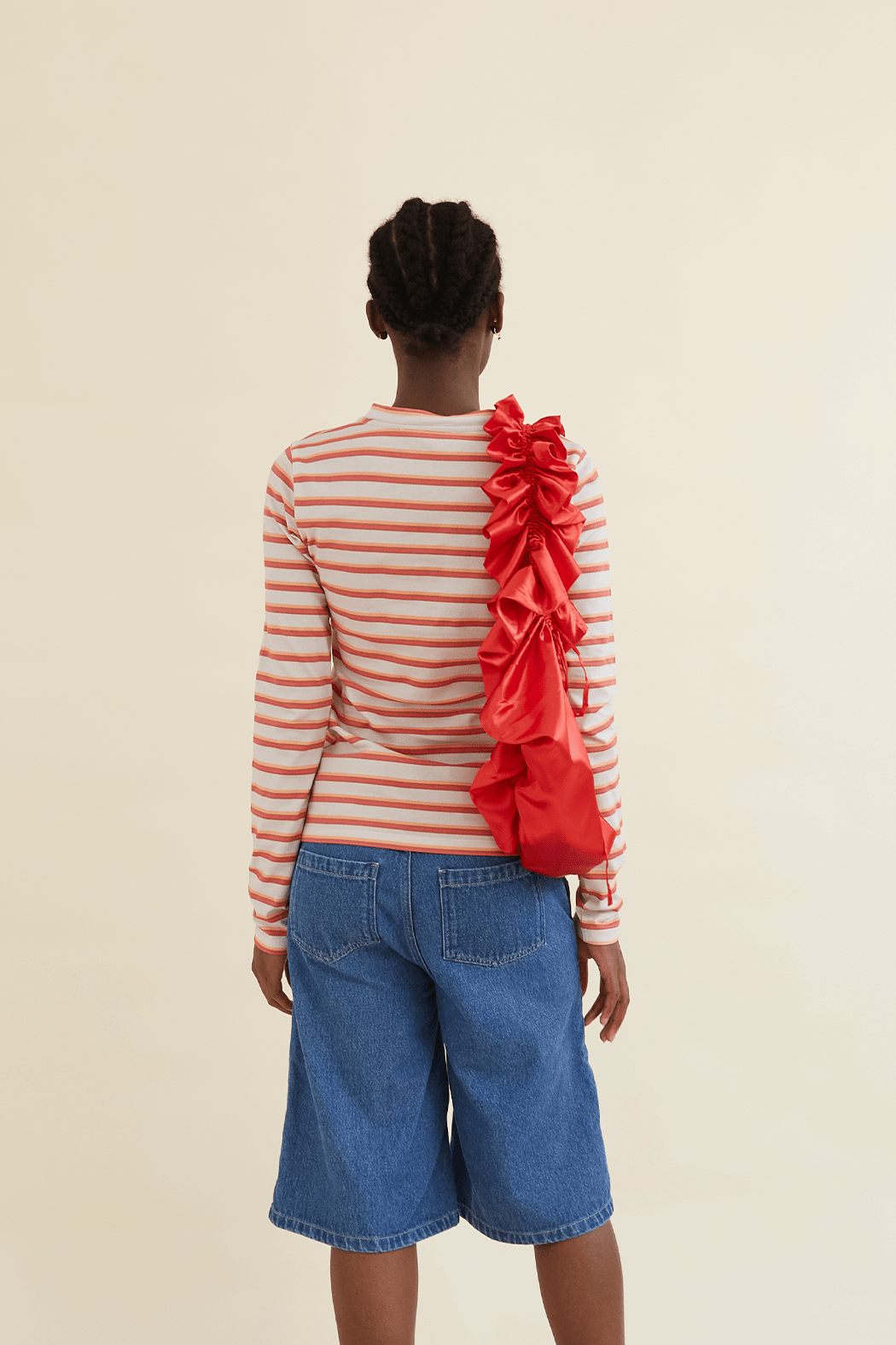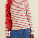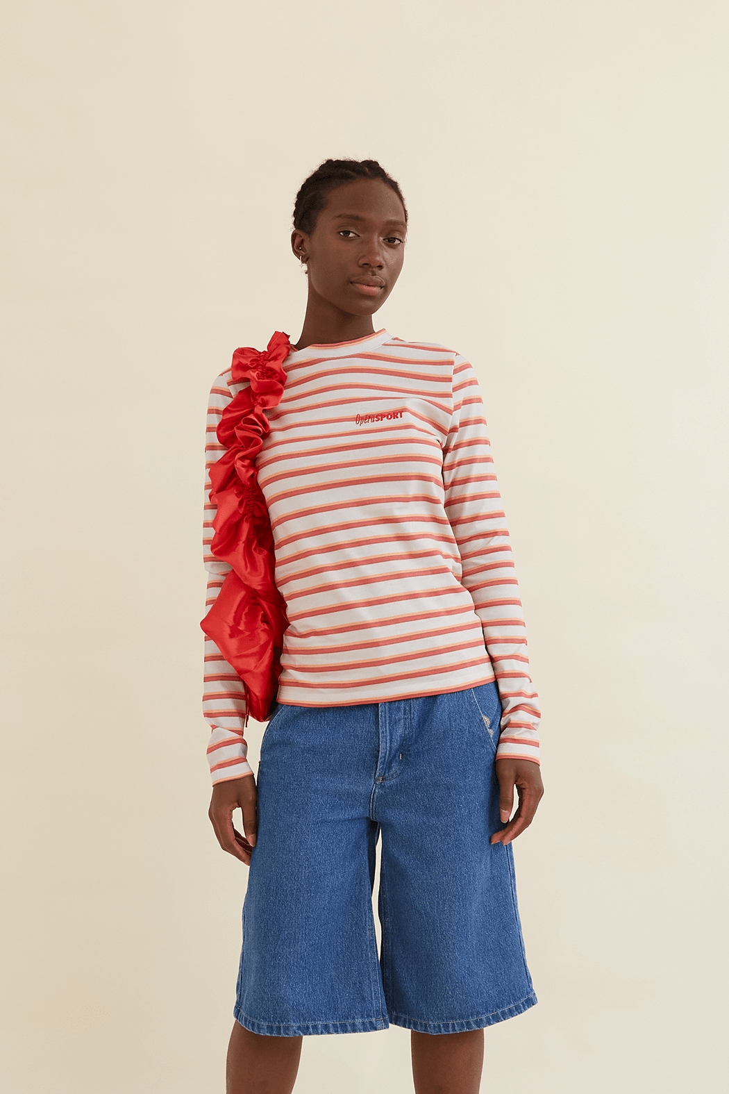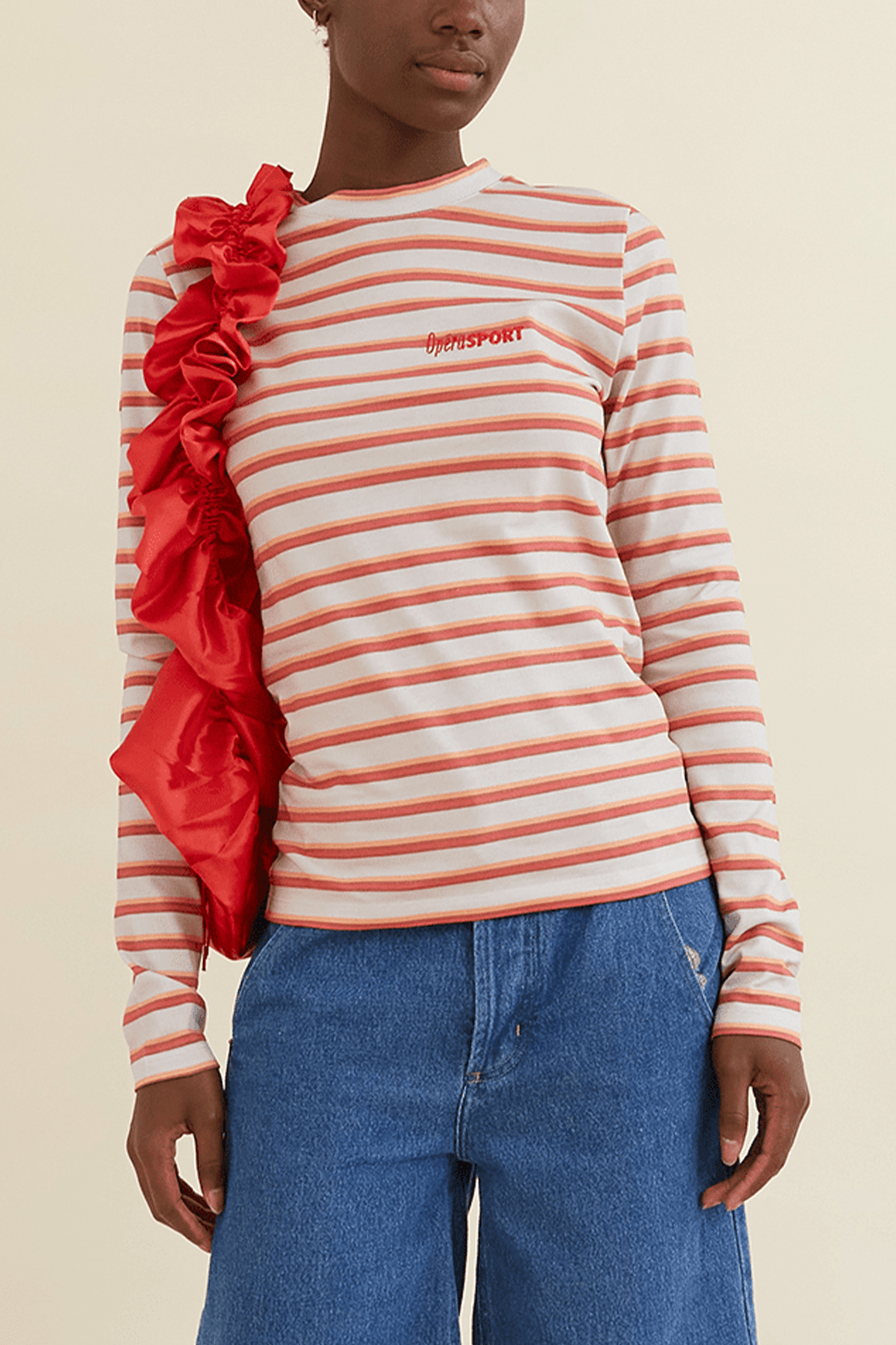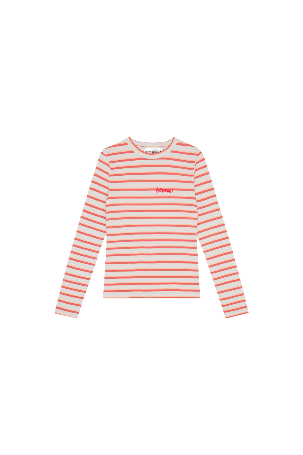 The Alora Long-Sleeved T-shirt is crafted from soft 100% organic cotton. It features a closer fit, a cool red-orange striped print, a round neckline, a straight hem, and an OpéraSPORT contrast logo print on the chest.