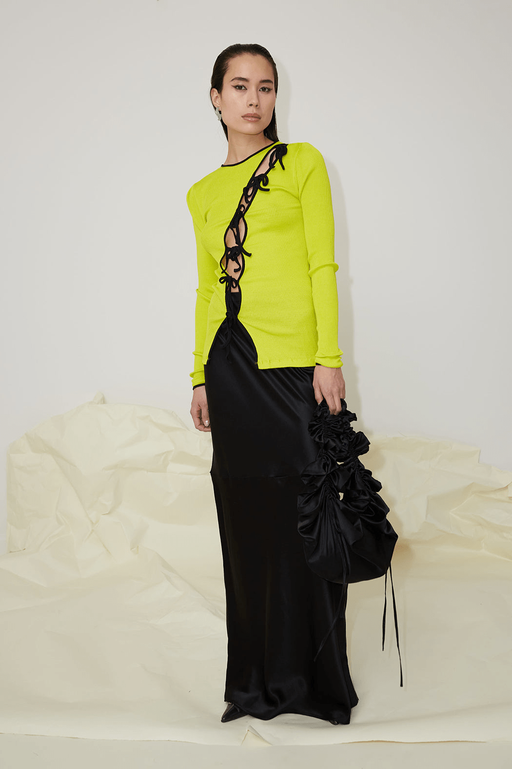 In signature OpéraSPORT style, the Celèstine long skirt is crafted from 100% black recycled silk and has a timeless, minimal design. A cut with gentle volumes, this beautiful feminine piece adds polished elegance to your wardrobe. It has a figure-skimming silhouette and features a flattering, slightly fluted fit with a lustrous satin finish. Endlessly versatile, the Celèstine long skirt will become a wardrobe staple.