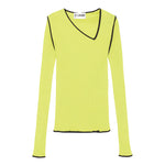 Our signature Eve top with the asymmetrical neckline in 100% recycled silk has been part of OpéraSPORT's editions since the beginning. The seamless silk closely hugs your figure and fits all shapes and sizes. For this edition, it comes in a vibrant evening primrose detailed with black contrasting hemsPlease note that this garment is made from 100% recycled silk, which is why small knots can appear.