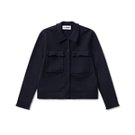 Our Yerin Jacket is crafted from 95% organic cotton and 5% cashmere. Designed in navy, it combines the softness of knitwear with the clean lines of a jacket. The pointed collar with delicate ruffled edges adds a refined yet playful touch, while two flap pockets and a button-down front complete the silhouette for effortless everyday wear.