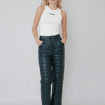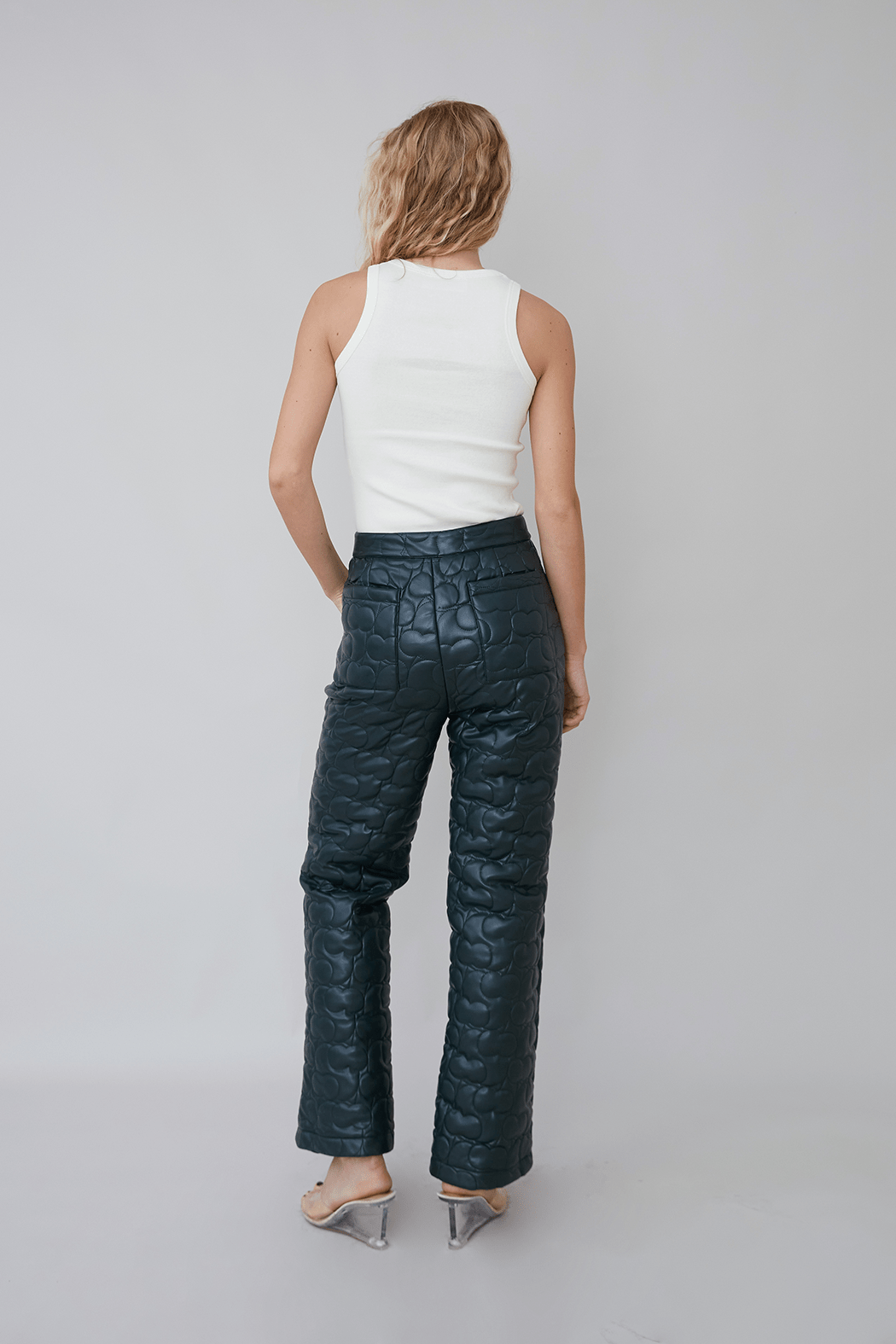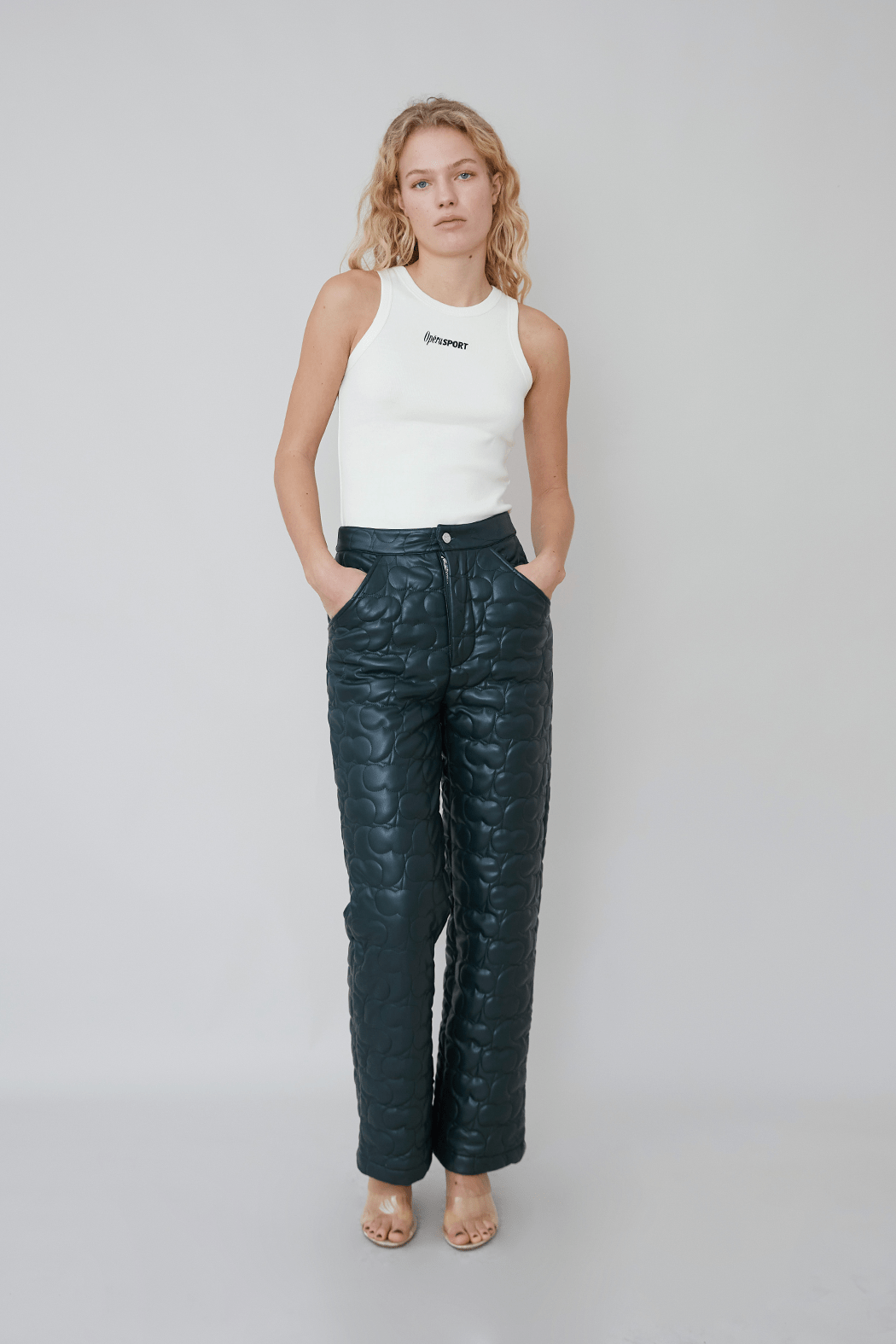 Our quilted Lisette Pants are crafted from 60% PU leather and 40% recycled polyester and features the signature OpéraSport logo within the stitching. The pants feature a high waisted fit, pockets and fastening with zipper and one button.