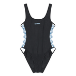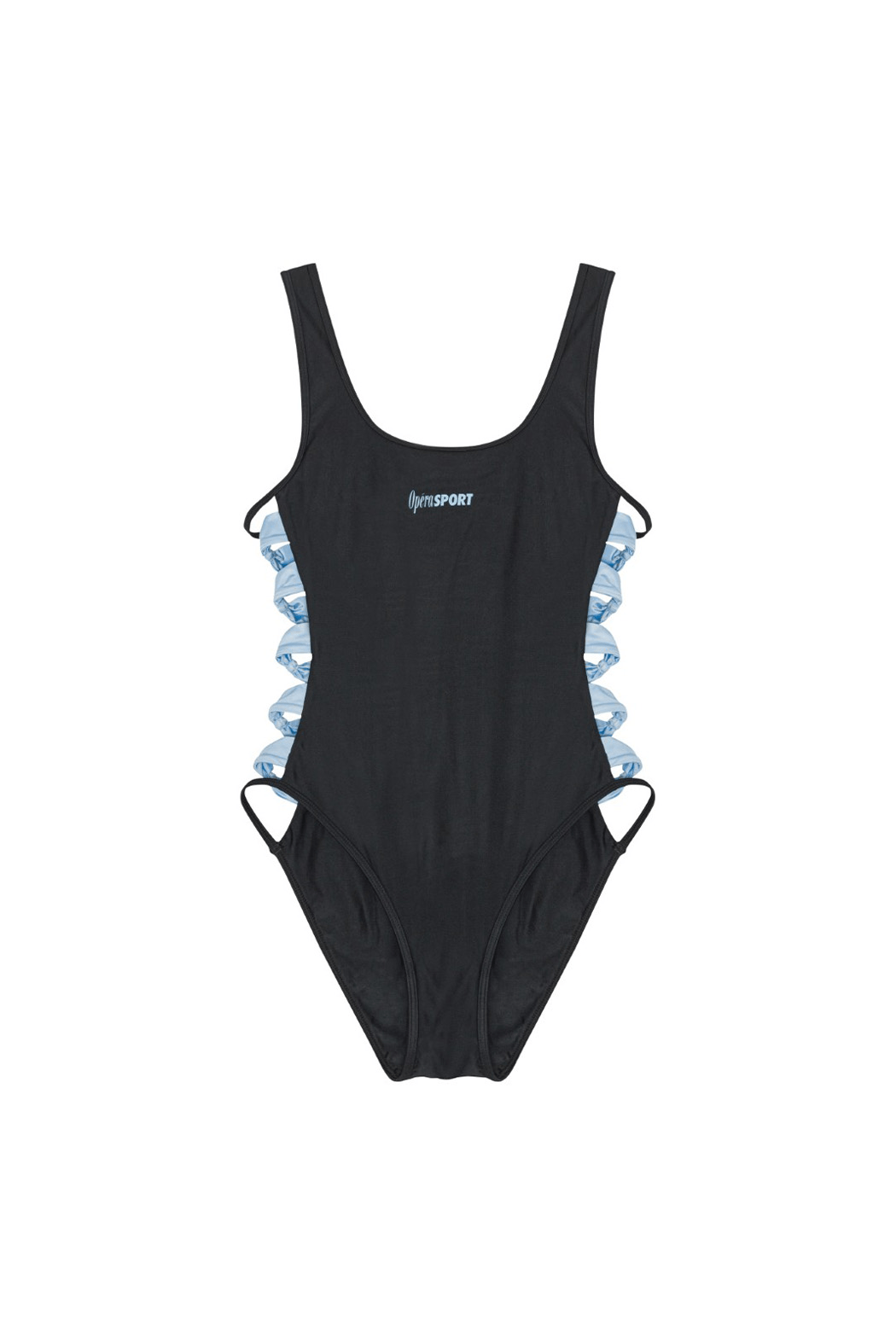 The Lucie swimsuit in black is crafted from recycled nylon and designed to accentuate the body with its sleek, sculpting silhouette. Featuring blue stripes along the sides and the signature OpéraSPORT logo on the front. Thanks to its refined details, the Lucie can effortlessly double as a statement top - ideal for pairing with your everyday wardrobe.