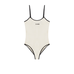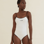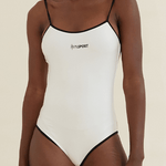 Our Luz swimsuit is a timeless 90s inspired swimsuit. Crafted from a stretchy fabric in spandex and recycled polyester in a soft light pristine tone. The swimsuit has a slim-fitted design with slender straps, a square neckline and a low back. It features the signature OpéraSPORT logo in the front. It's important to note that it gets slightly transparent when wet.