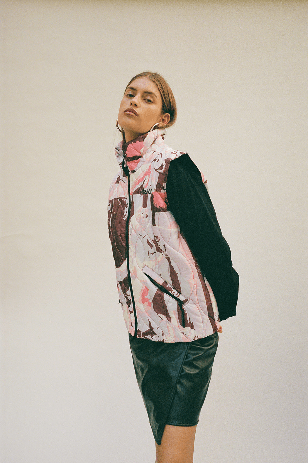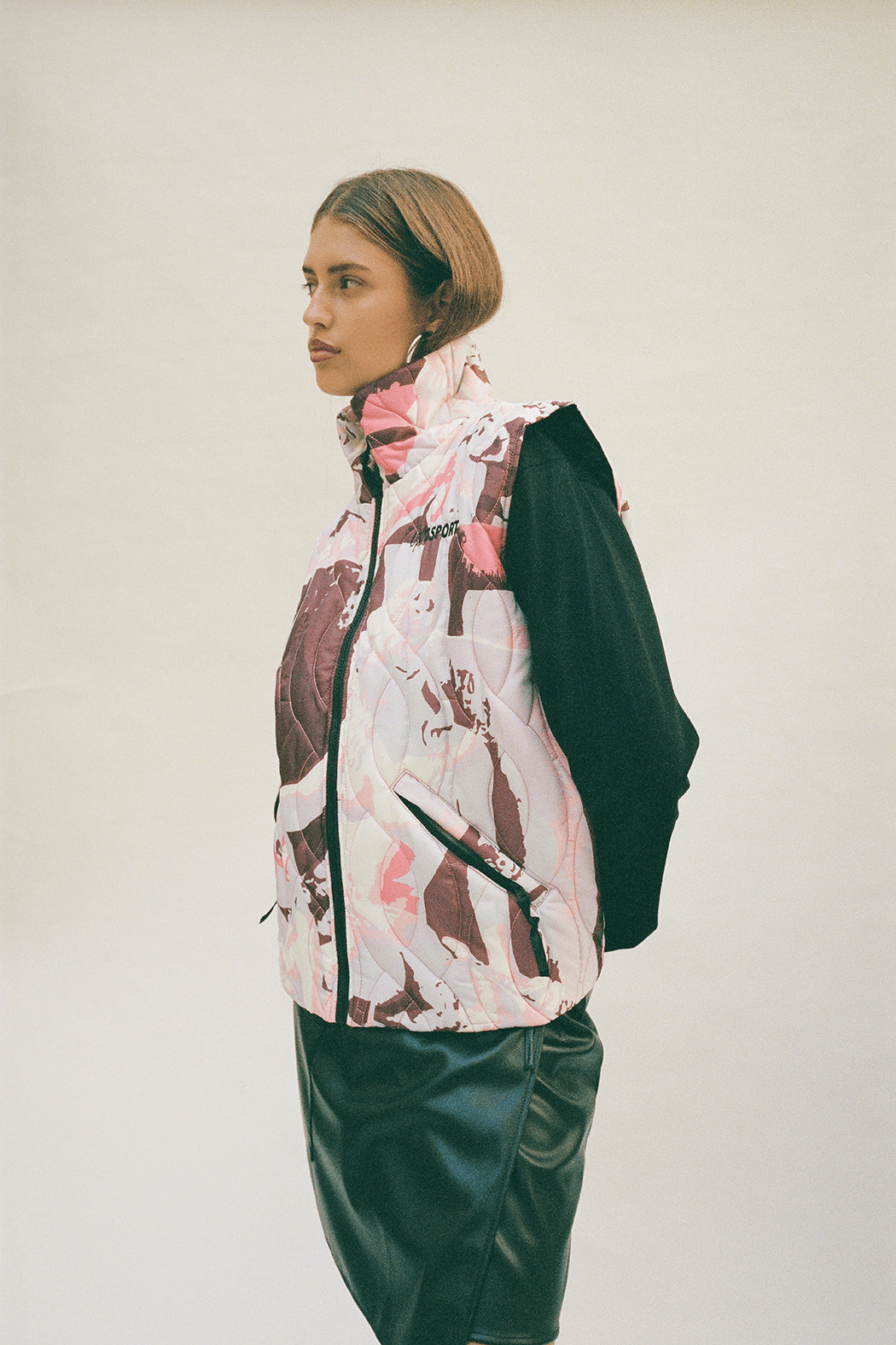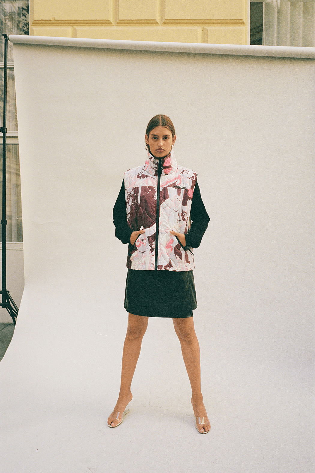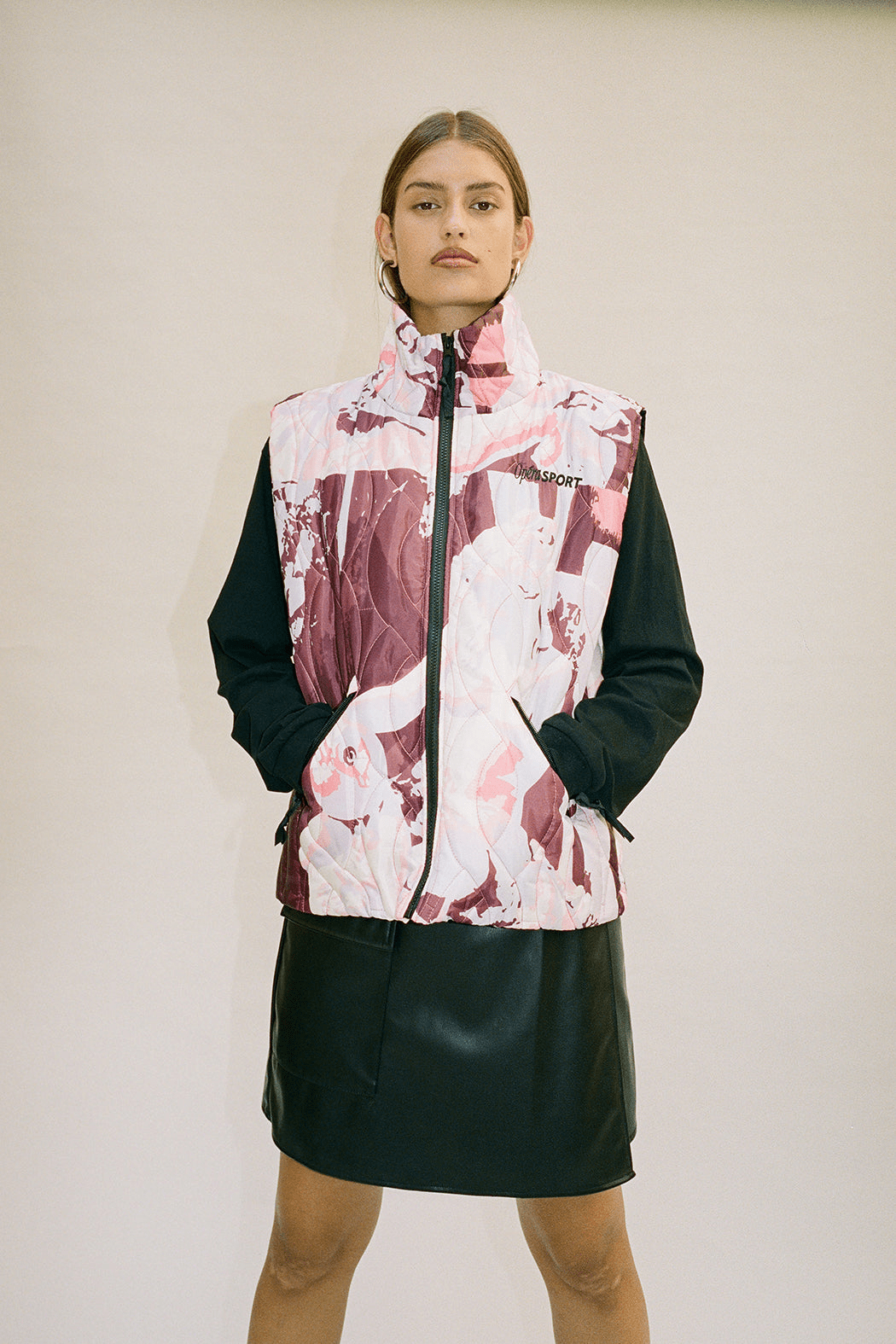 For edition 12, the Mario unisex vest, made from recycled polyester, comes in a soft-colored print inspired by the sculptures that adorn both Copenhagen and Paris in pink and purple hues. The vest is embroidered with OpéraSPORT branding on the chest. It has light padding with welt pockets, a full zip, and a tall collar for optimal weather protection.