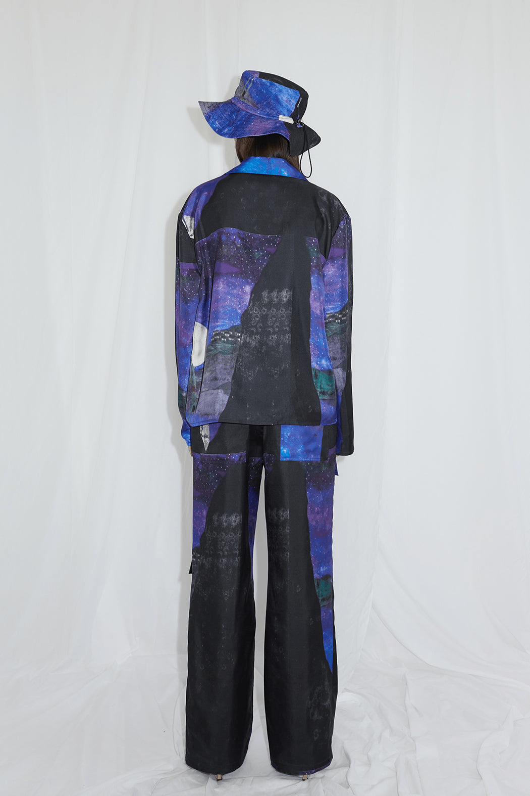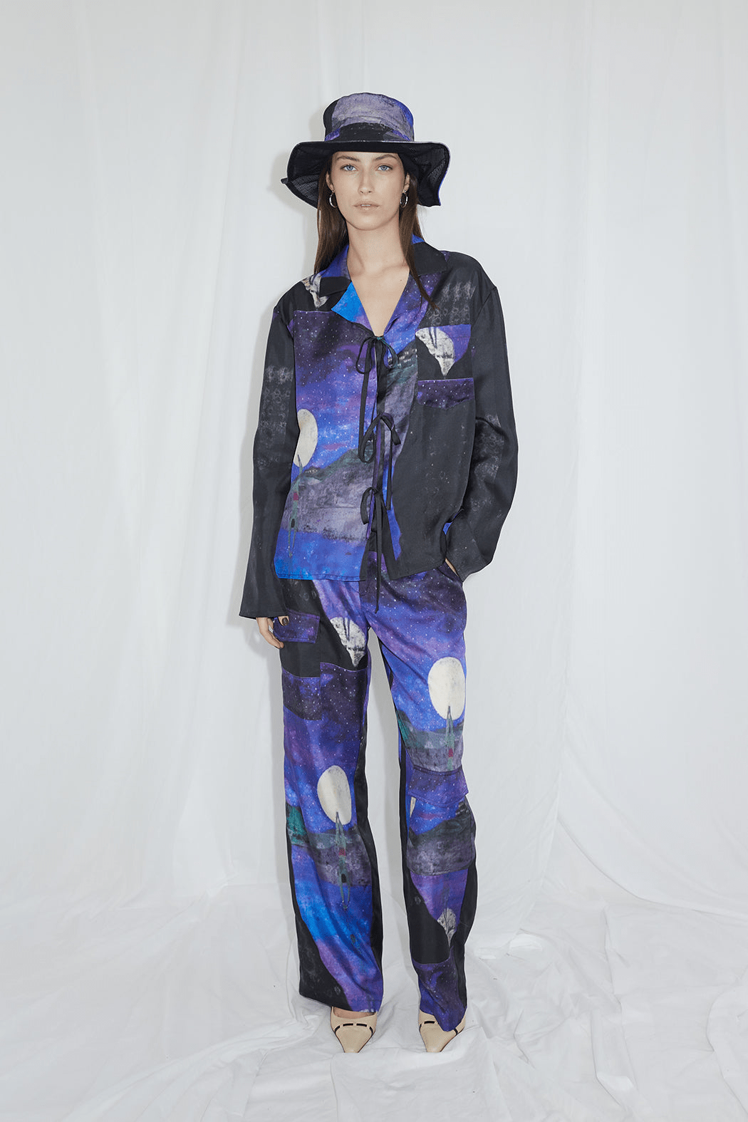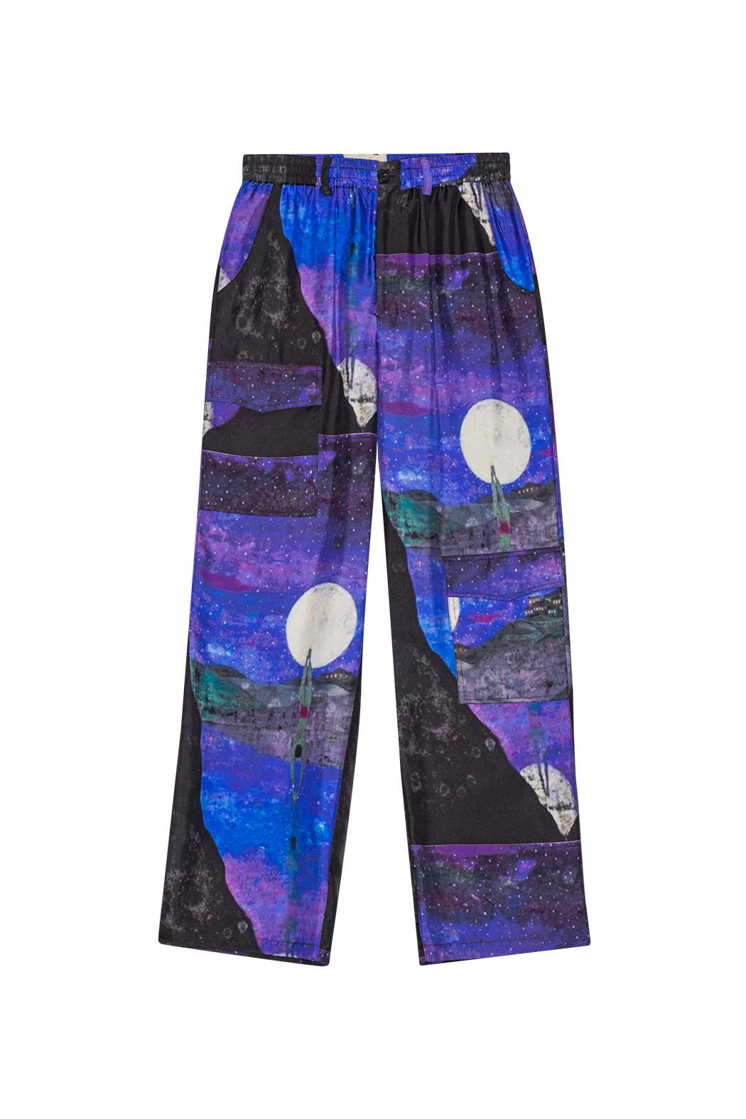 Balancing the bold with the practical the Cora pants are crafted from 100% recycled silk with Tom Anholt's playful print. They have a loose and casual fit with long legs, side- and back pockets, and two cargo pockets on each leg. The pants have an elasticated waistband, belt loops, and button- and zip closure in the front.