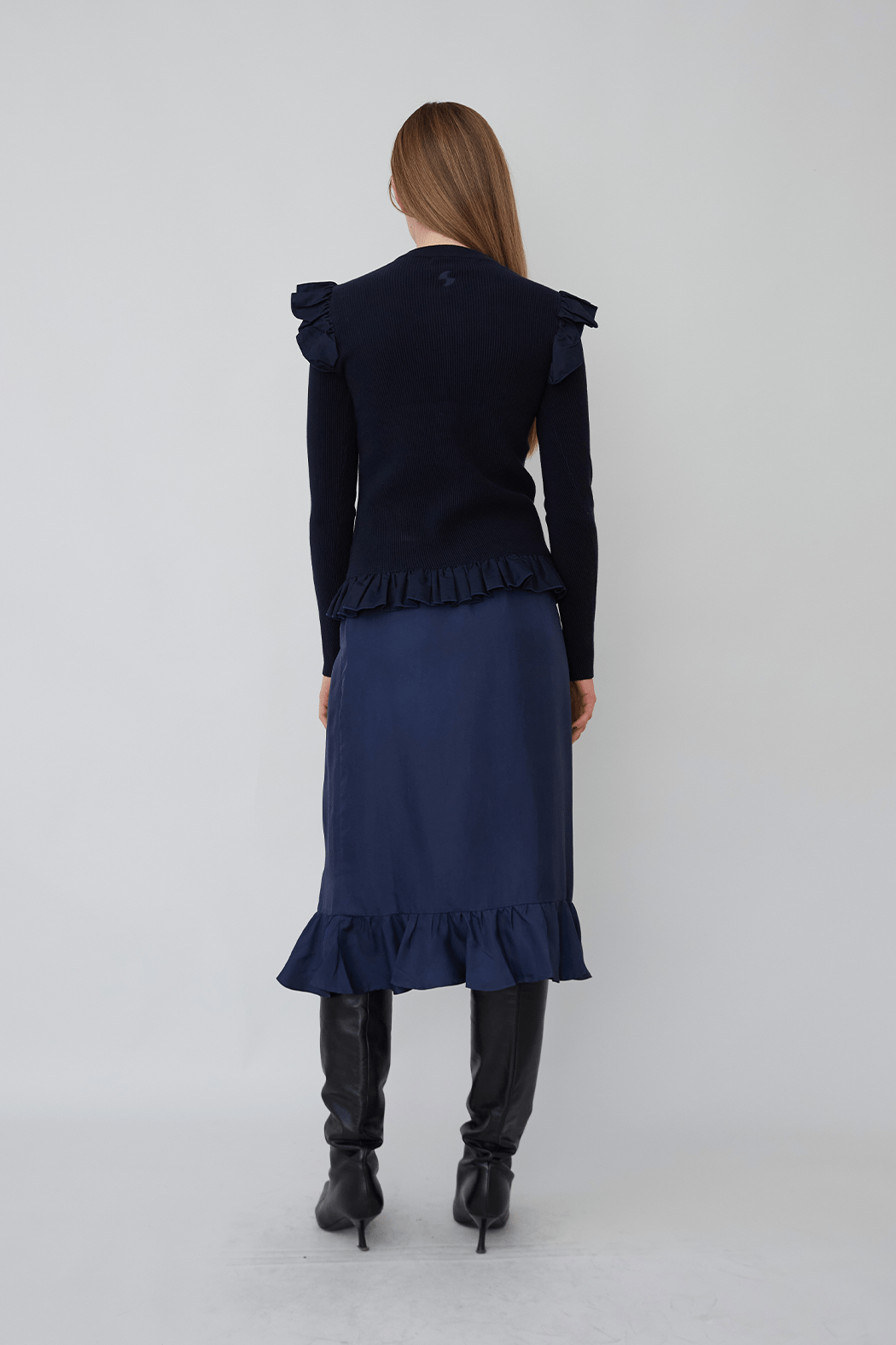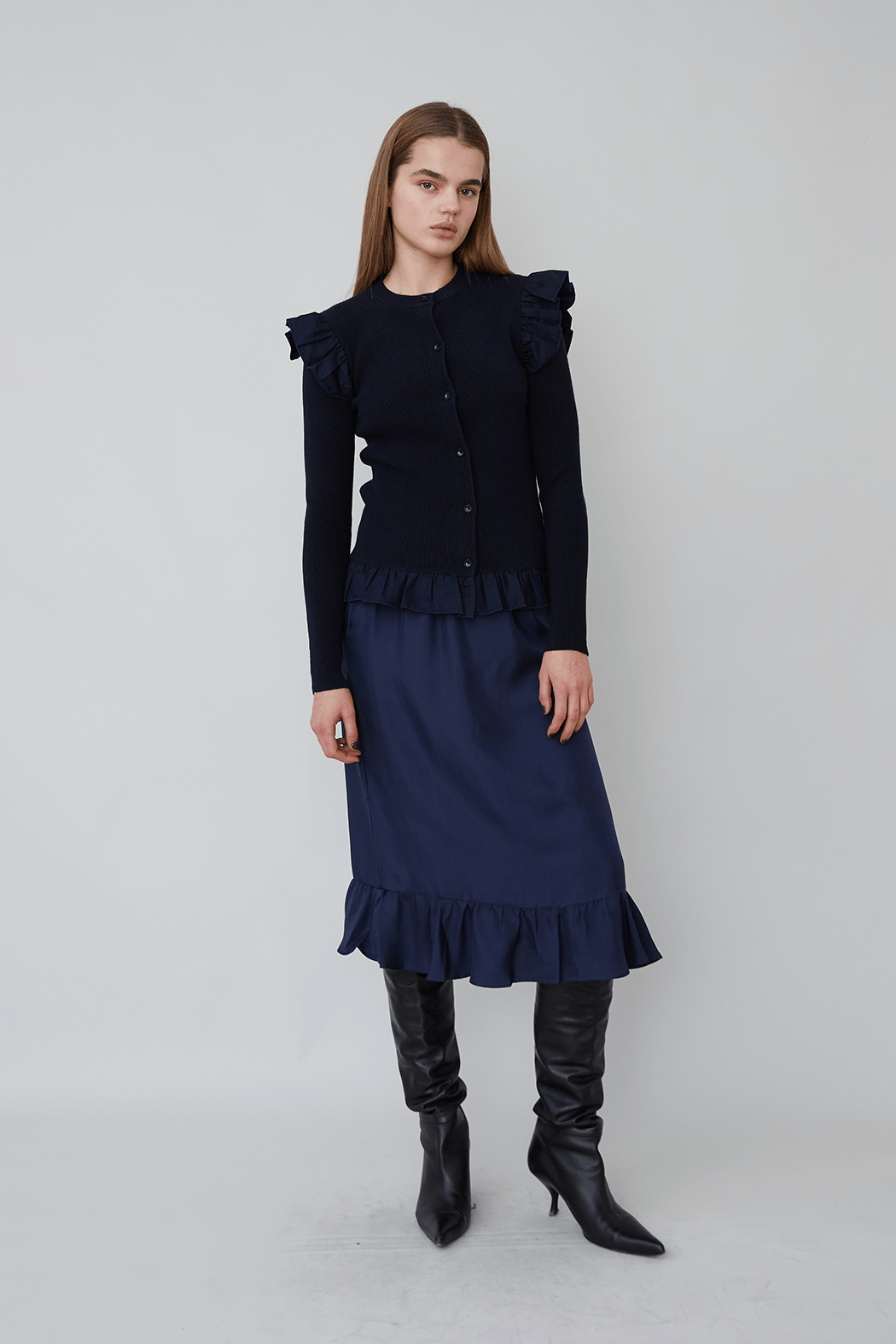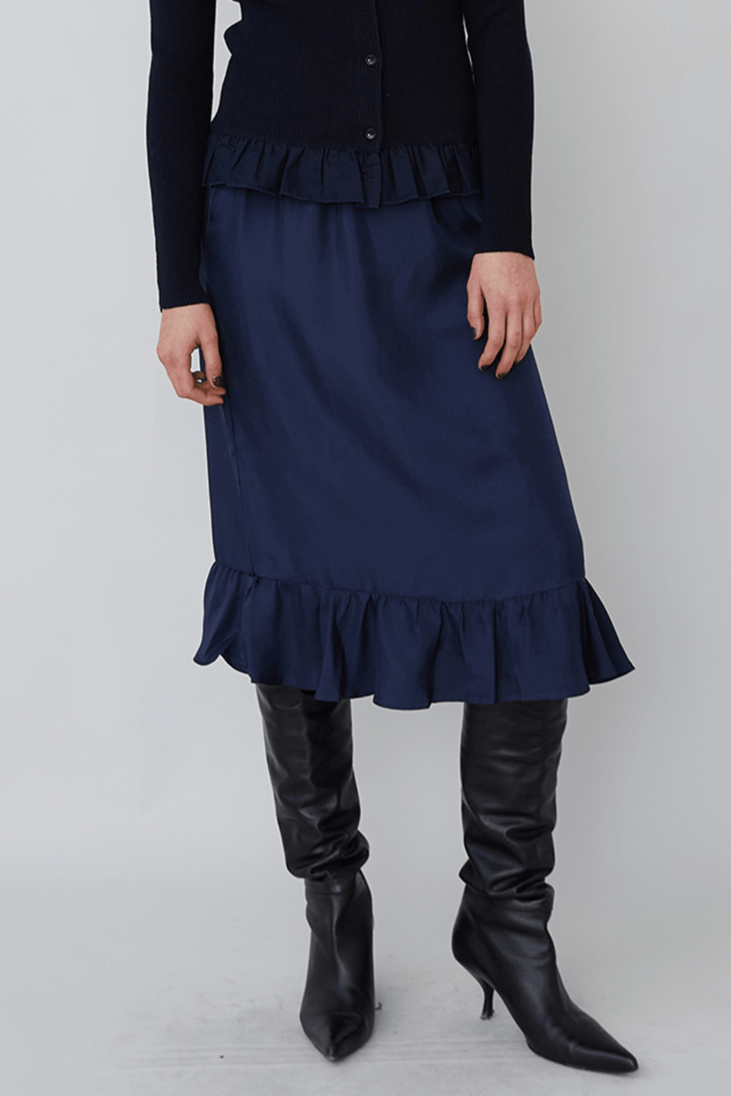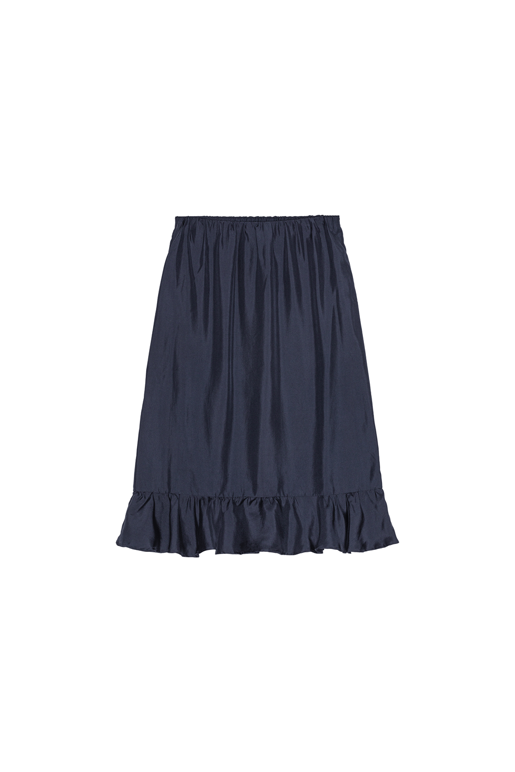 Charléne Skirt is crafted from soft and silky 100% recycled polyester. The skirt has a slightly loose fit and features fine detailing around the hem, with an asymmetrical length that falls below the knee.