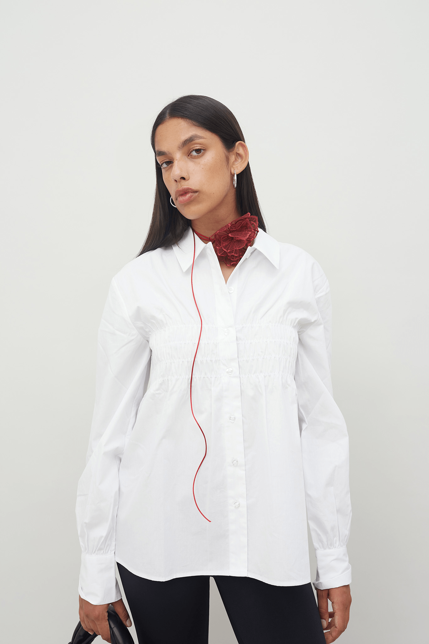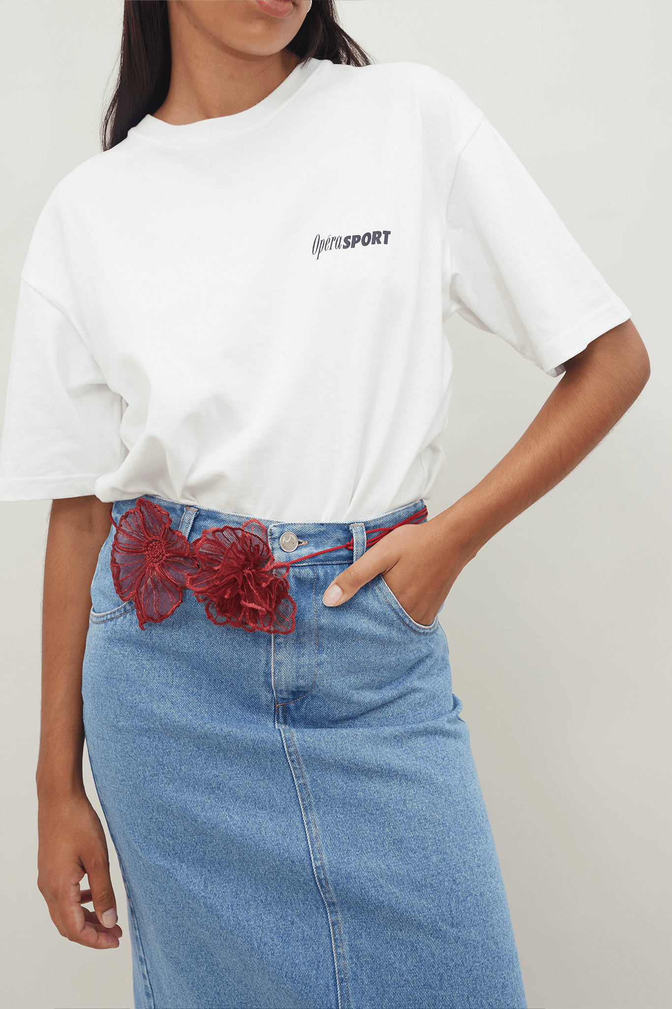 Our Rosalie belt is crafted from 100% recycled polyester. The belt features a slender cord that can be draped around the waist or neck, mimicking a necklace. At the center of the cord, there is a flower crafted from delicate floral lace. Rosalie is the perfect accessory to spice up your outfit.