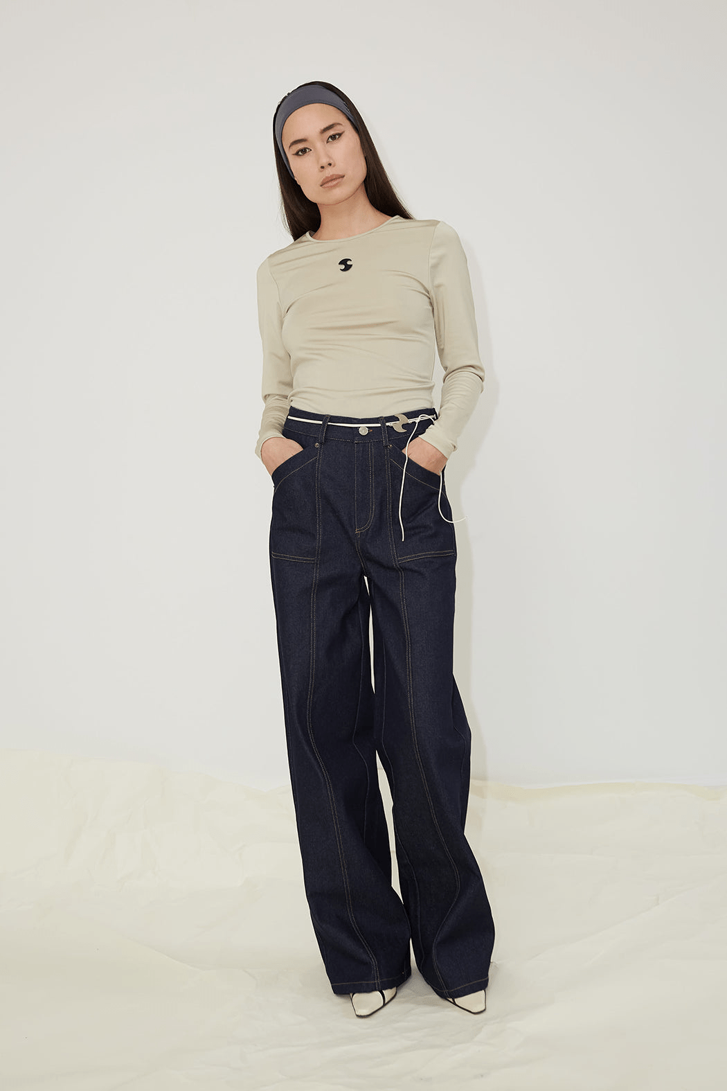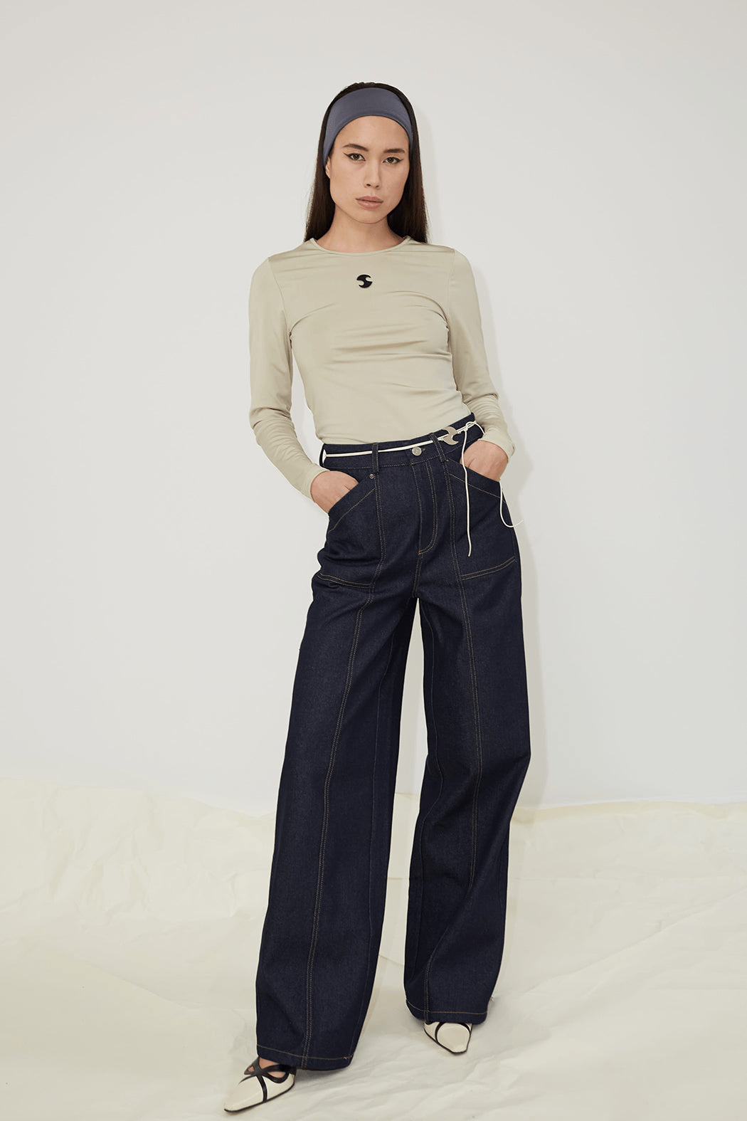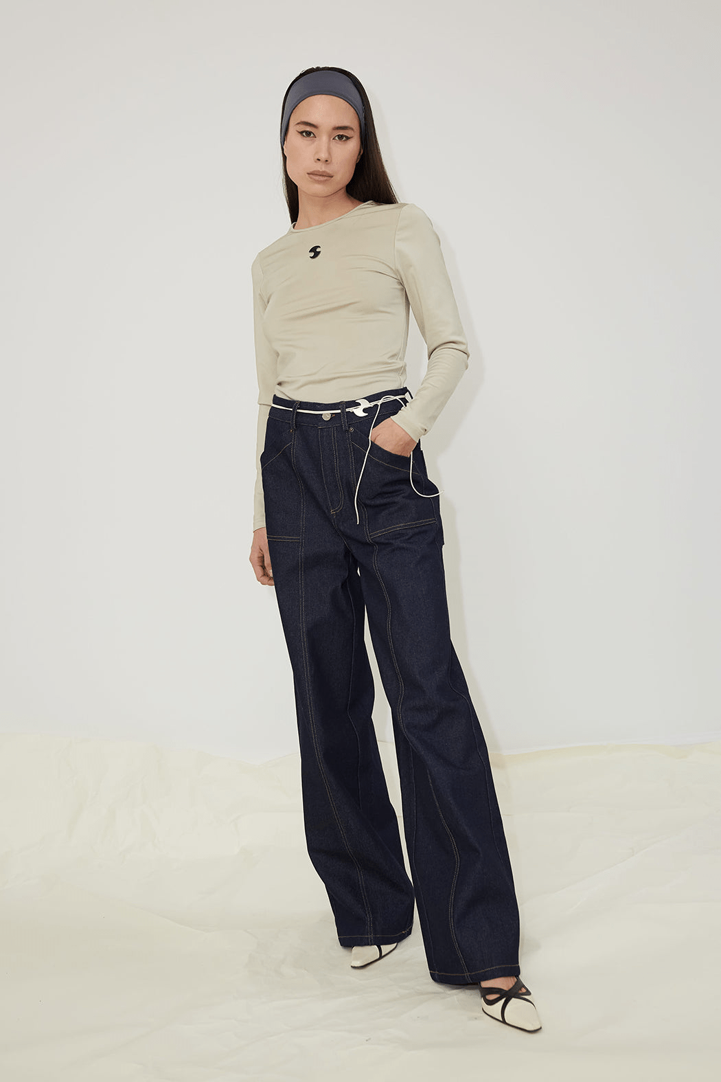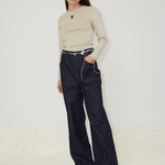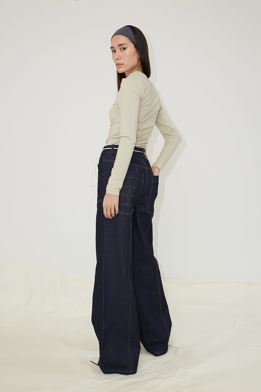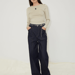 The Dallas jeans are crafted from dark blue rigid denim made of 100% organic cotton. They feature wide oversized pockets with bold contrasting stitches in both front and back, and has side- and back pockets embroidered with OpéraSPORT's signature logo. The straight-leg jeans have features a high waist and long length and comes with a zipper and button closure at the front as well as bell loops. For a cool look, consider pairing them with the Eliza Seamless Top.